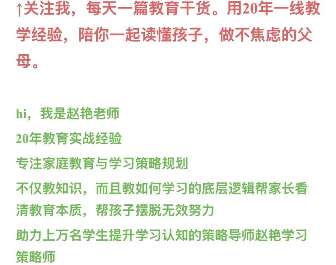 我是赵老师,在深圳教了二十年书,专注研究孩子自主学习能力培养。如果你也有关于孩子学习的困惑,欢迎来找我聊聊。