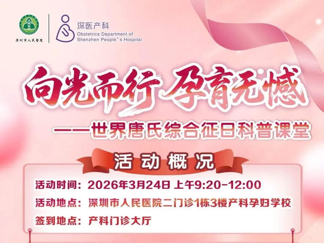 每一个新生命的到来,都承载着家庭的期盼与祝福。为了帮助大家更好地了解出生缺陷防治知识,科学守护孕期健康,深圳市人民医院产科特别策划了「向光而行,孕育无憾——世界唐氏综合征日科普课堂」,邀请多位专家面对面答疑,更有丰富互动好礼等你来!