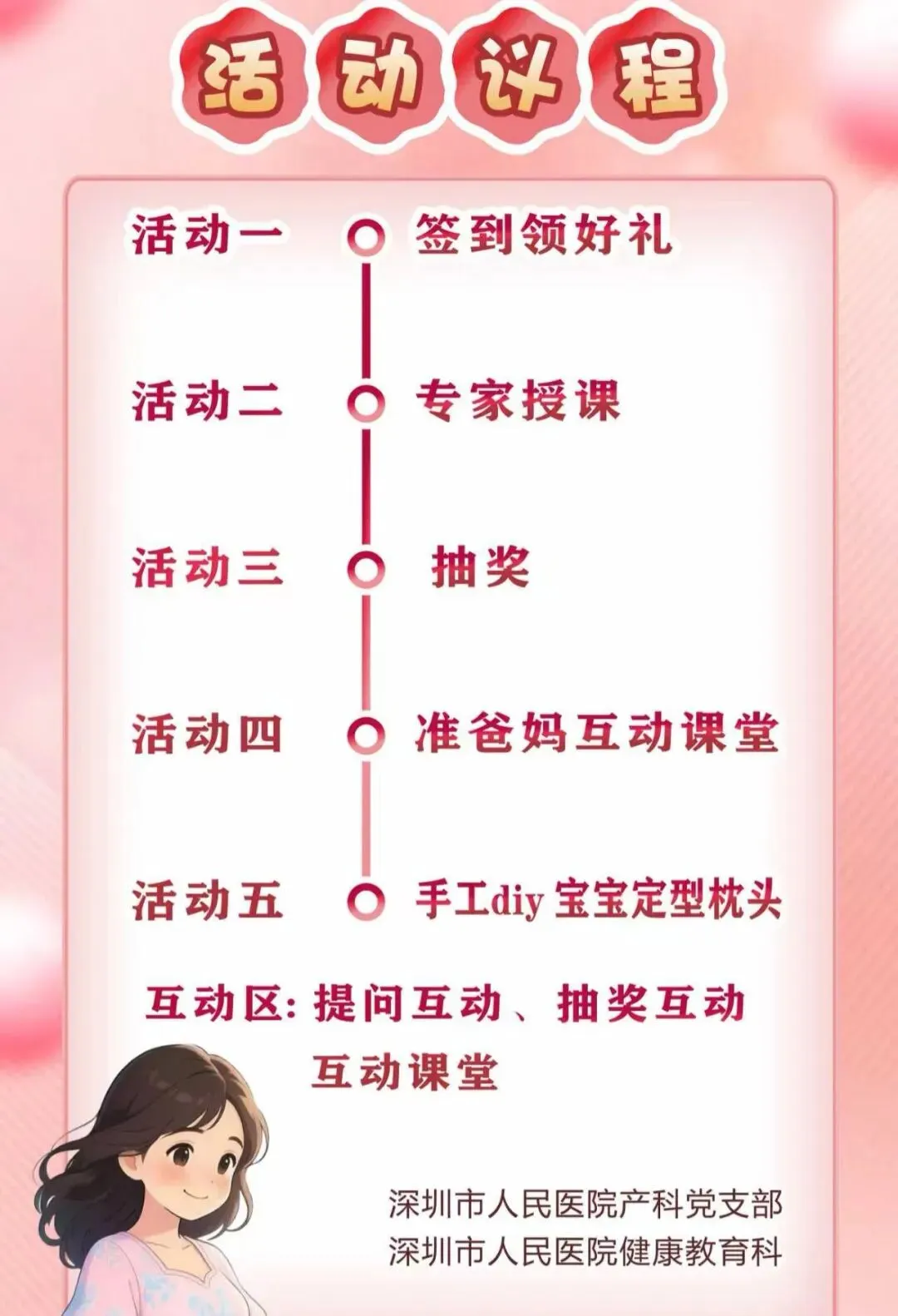 活动地点:深圳市人民医院二门诊1栋3楼产科孕妇学校