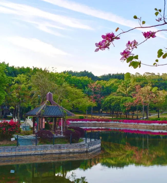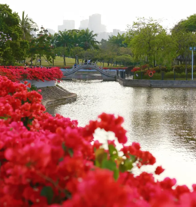 地址:深圳市南山区南山大道 3109 号门票:免费开放(全年无休)开放时间:6:00-23:00(官方最新公告)交通:地铁 12 号线至中山公园站D 口出,步行约 300 米直达公园西门(最靠近逸仙湖);自驾导航 “深圳中山公园西门停车场”,停车费 5 元 / 小时,车位充足最佳赏花期:三角梅花期从 3 月持续至 5 月,3-4 月为盛花期,此时逸仙湖畔花海最盛打卡小贴士:九曲桥、湖心亭、亲水平台为最佳拍照机位,穿浅色系、白色衣服出片率最高;公园内可搭帐篷(仅限大草坪区域),可自带野餐垫、零食,适合家庭聚会、朋友野餐。