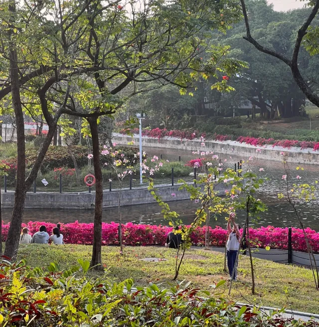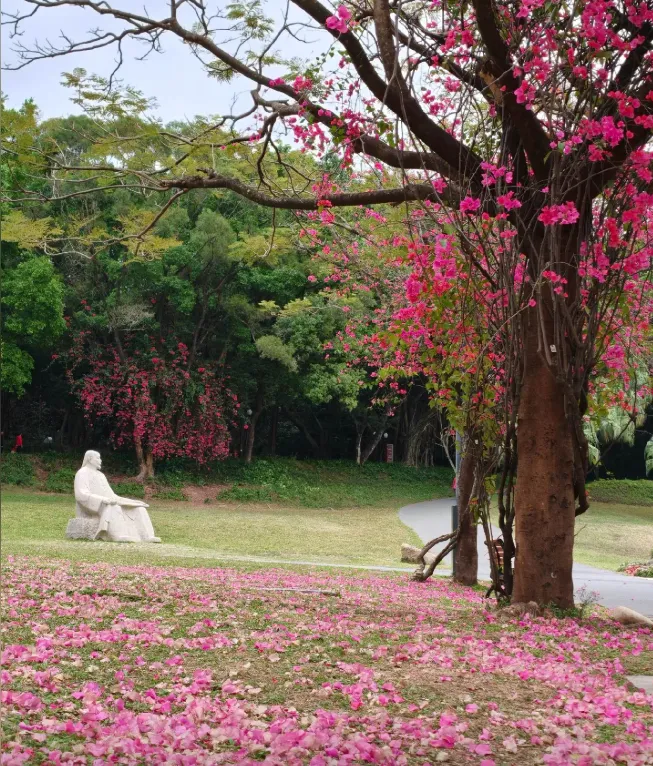 有人说,中山公园是深圳的 “时光容器”,装着百年的历史,也装着最鲜活的春日。它没有网红公园的拥挤,却有着老牌公园的底蕴与美好,百年古木遮天蔽日,逸仙湖水碧波荡漾,春日的三角梅开得热烈,免费开放,地铁直达,不用走远,就能在闹市旁寻得一处惬意。