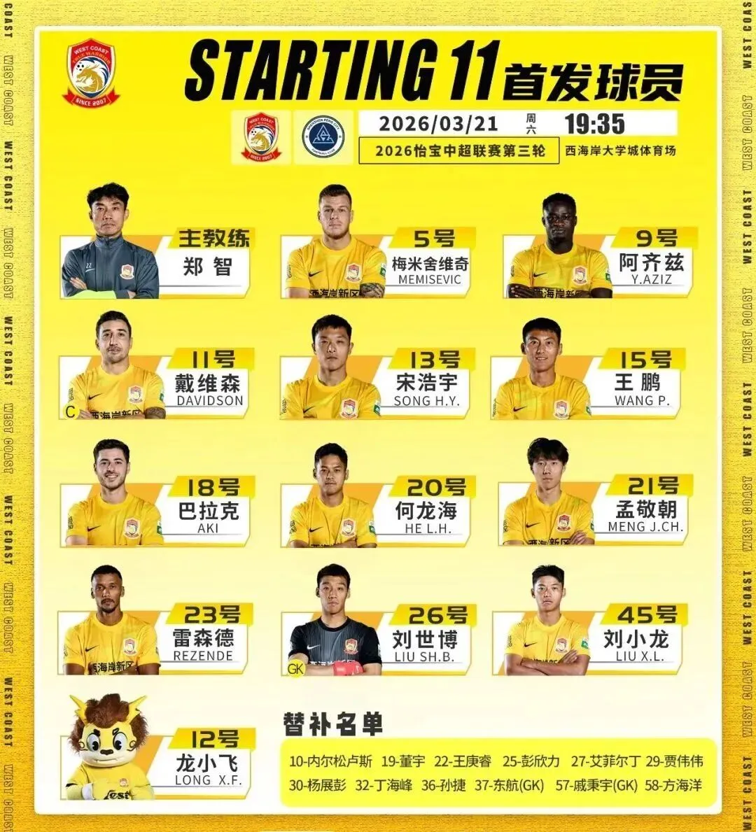 2026中超联赛第3轮比赛中,