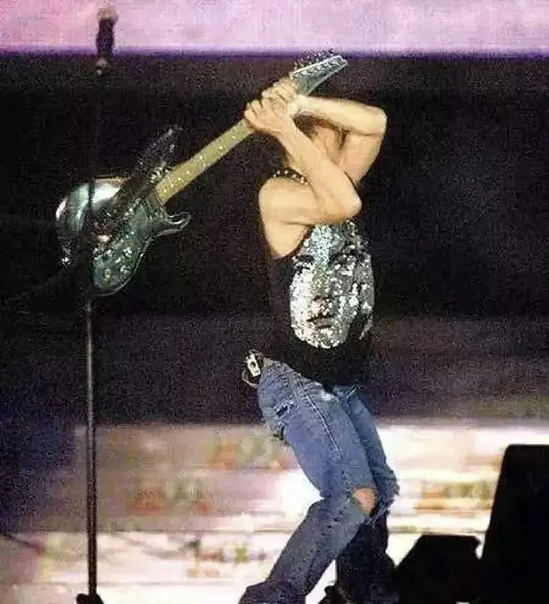 他已经是20年都没开演唱会的人,2005年的时候他还是25岁左右,那时候的演唱会最经典的就是当场砸烂了吉他(当时价值95万的吉他)。