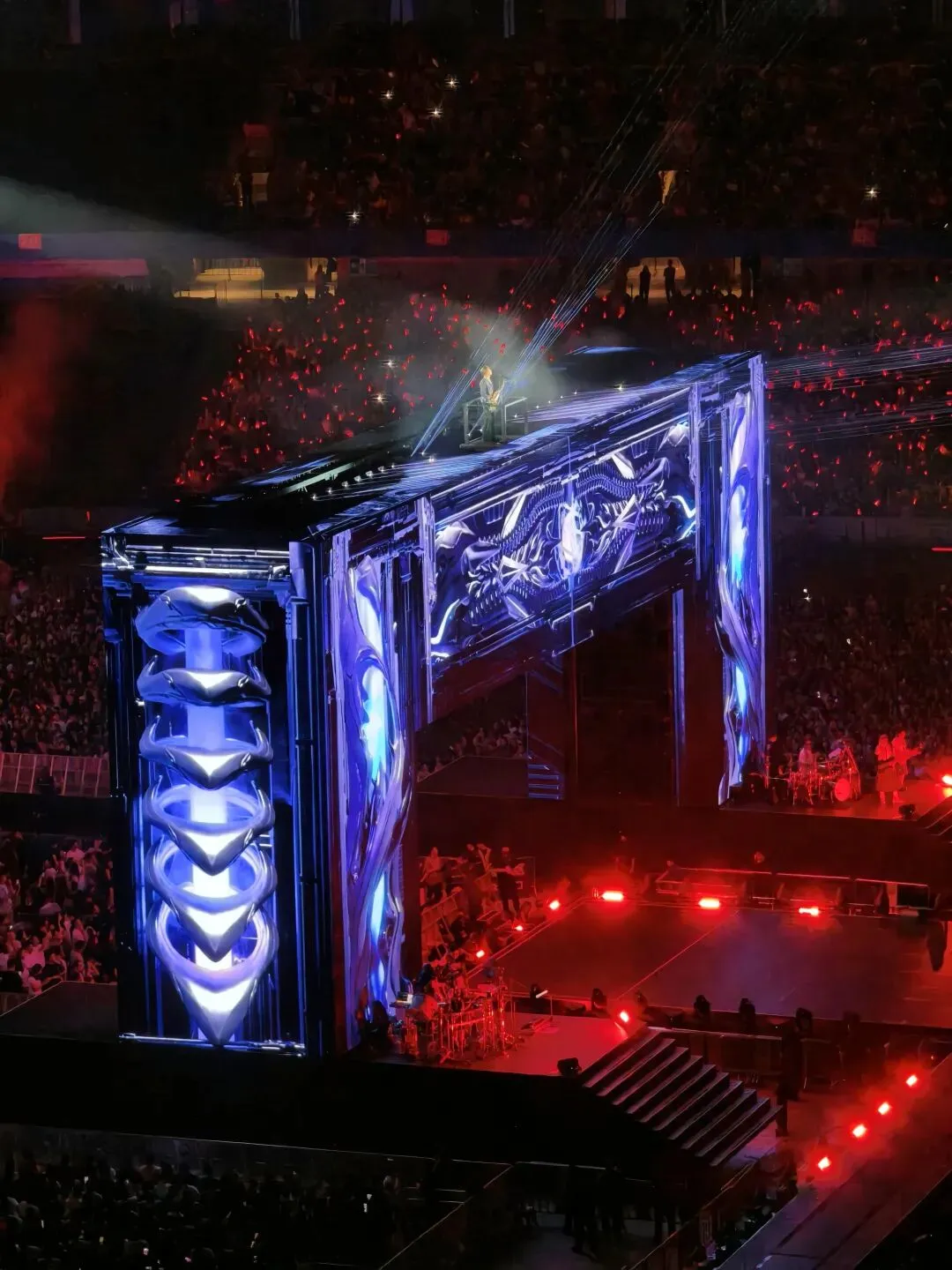 我买的是山顶票,看人很小,基本上都是看大屏幕为主,感受演唱会的氛围。音效方面,个人认为还是室内场馆yyds。但是现在艺人都喜欢在露天场馆开演唱会,可能是可容纳的人多,多赚一点吧。