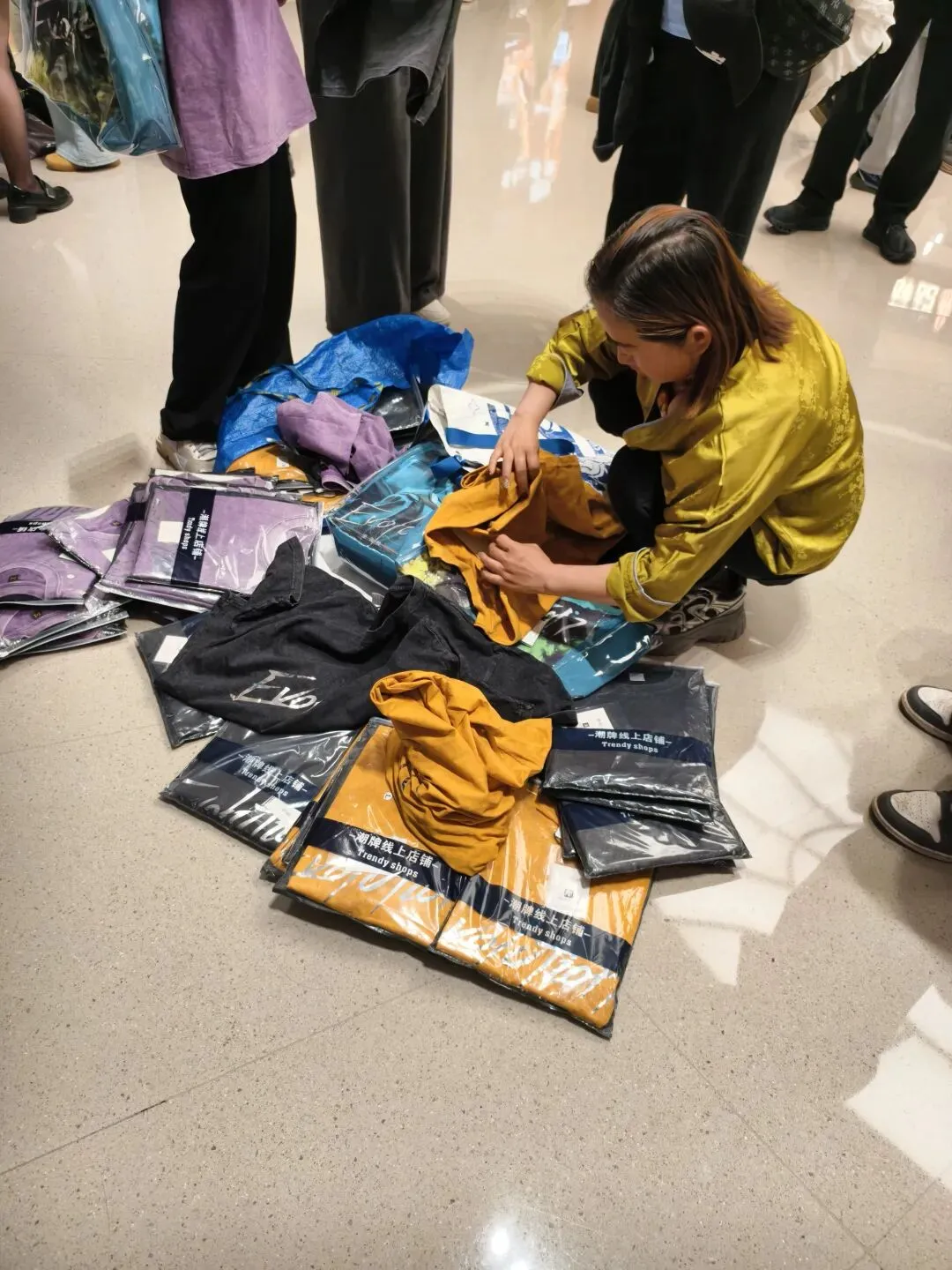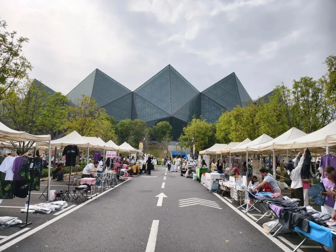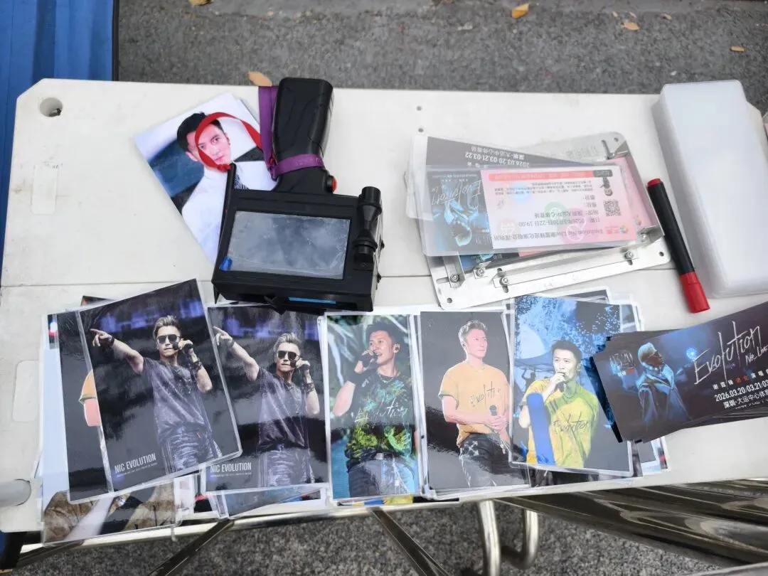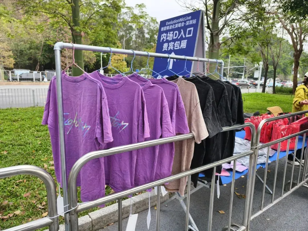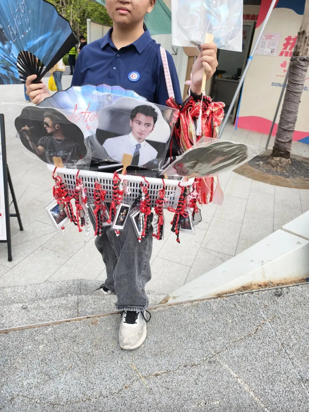 很多人在路上摆摊,卖一些演唱会相关的应援纪念品,气氛还是很好。