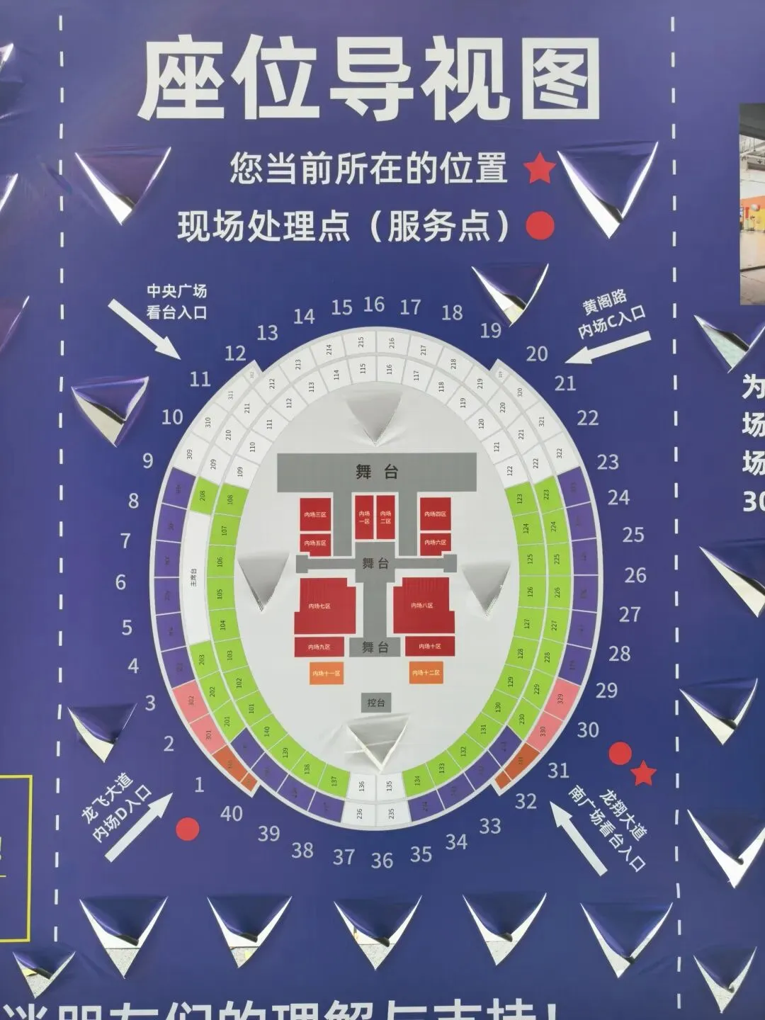 另外总结一下演唱会必get技能,1.尽量公共交通出行,提早出发;2.轻装出行,一个包就够了;3.吃饭不要选大品牌,见到排队少的就先果断吃了,还要备一些干粮,水;4.重要的是带上充电宝和身份证;5.入场要看好地图,大部分场馆内场和看台的入口不一样;6.周边城市当日往返大巴也有相关的服务,大家可以搜一下,而且还可以加到歌迷群,还是不错的选择(注意甄别人群,谨防被骗)。