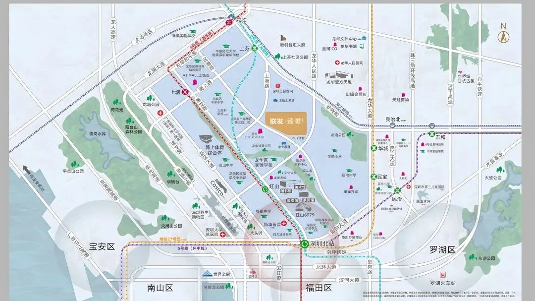龙华核心大道“民塘路”在旁,4/6双地铁环绕,1 站深圳北