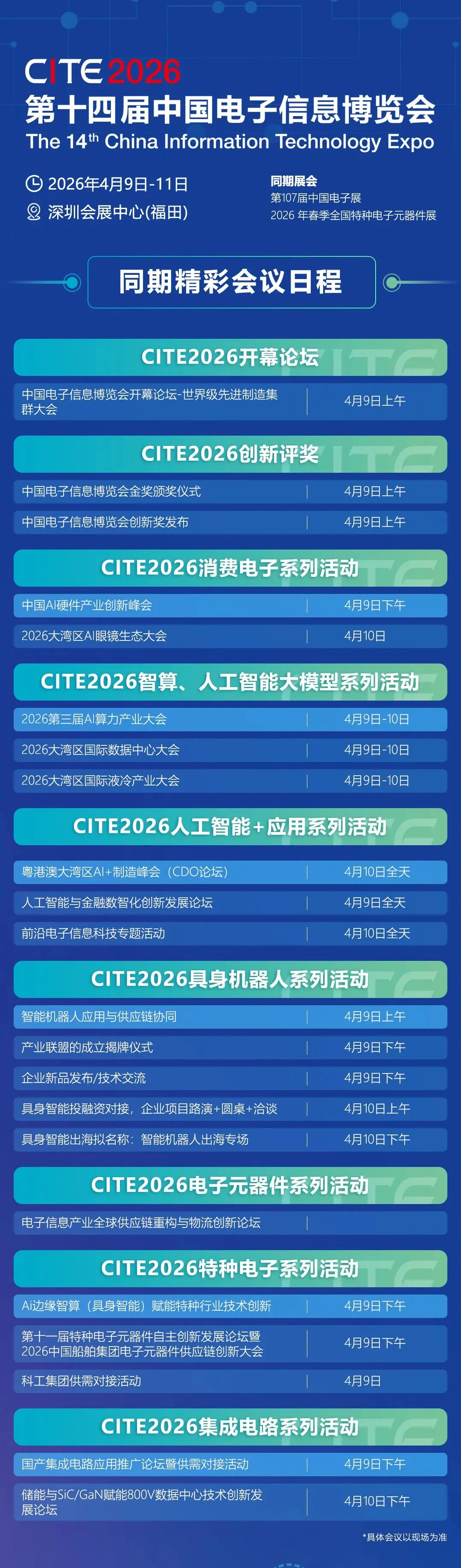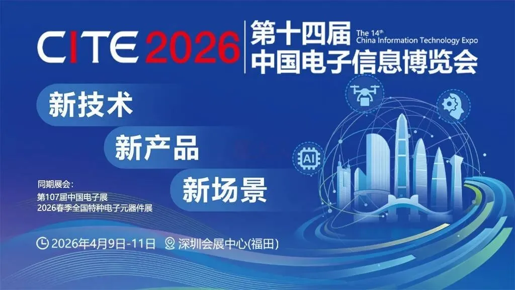 行业风向标,科技新主场!第十四届中国电子信息博览会(CITE2026),将于4月9-11日在深圳会展中心(福田)隆重开幕!核心展商矩阵、高端会议议程现已全面公开,精准对接产业链资源,把握产业发展新机遇,诚邀各界客商共襄盛举!