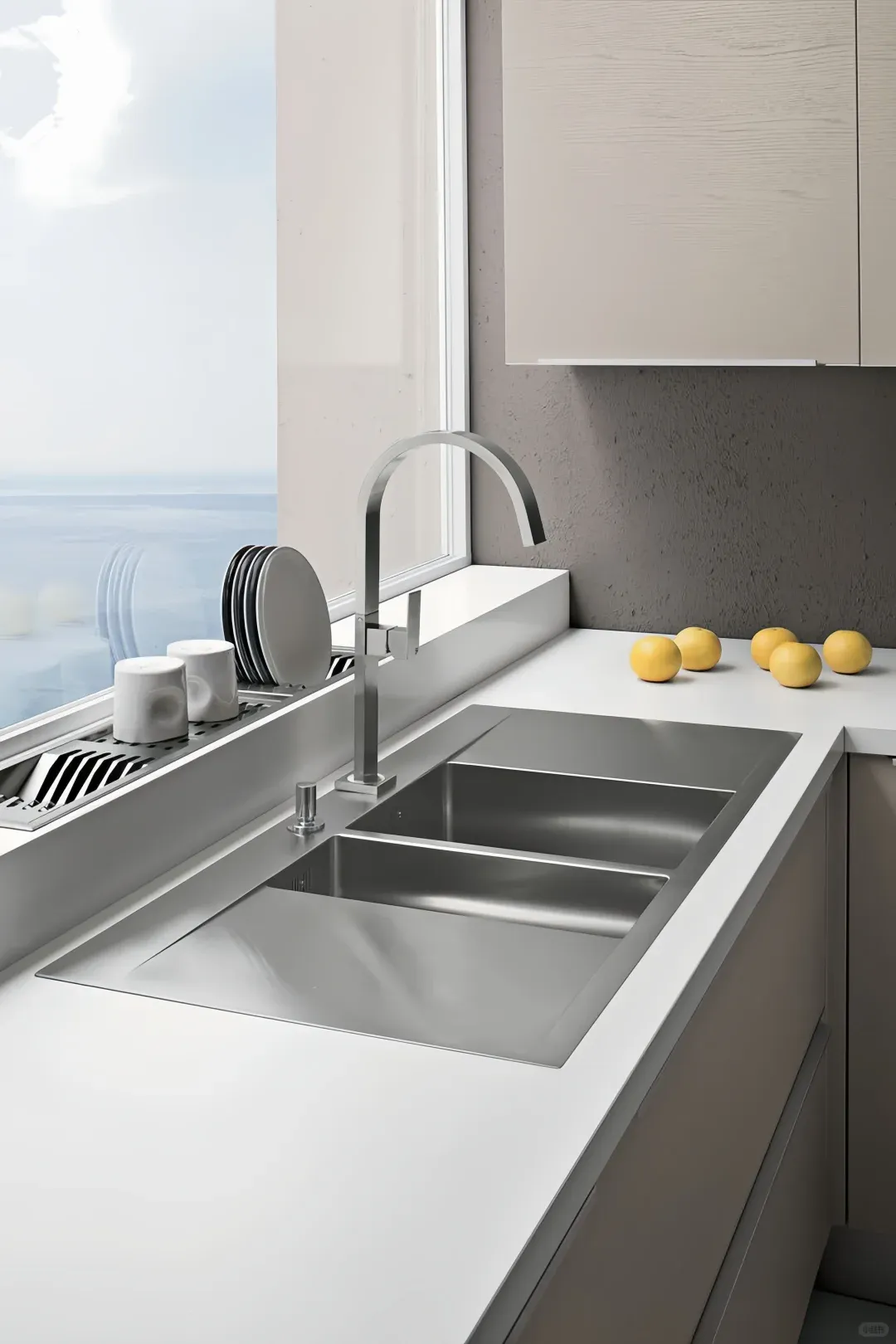 “这是嵌入式沥水筒,”小C说,“洗好的筷子勺子直接插进去,水顺着流到下水道,永远不会积水发霉。”