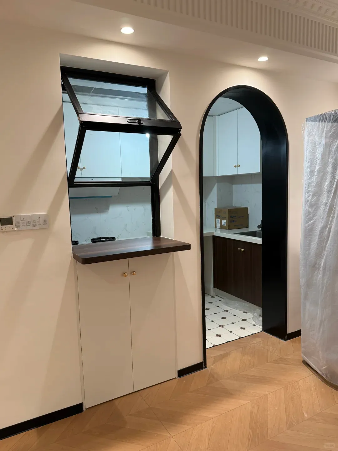 “炒完菜,盘子直接往窗台上一放,餐厅里的人伸手就能端走。再也不用端着滚烫的盘子穿过厨房门。”