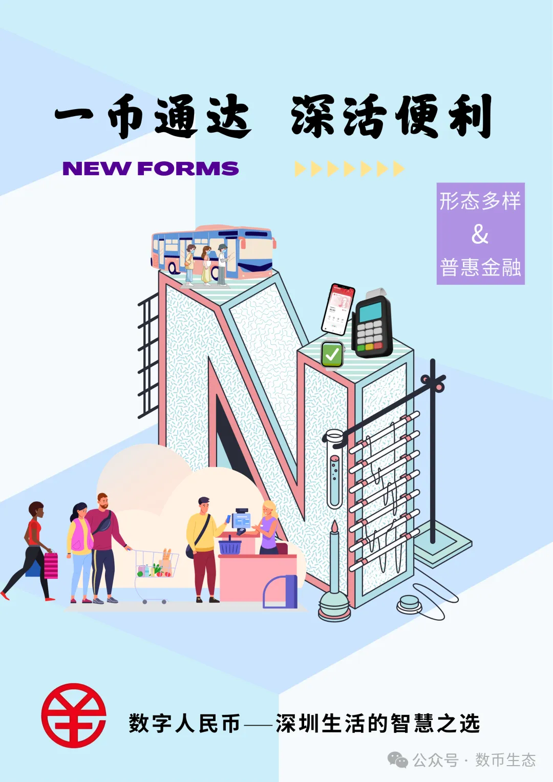 为强化数字人民币宣传质效,中国人民银行深圳市分行、中共深圳市委金融委员会办公室、深圳市市场监督管理局联合举办“时代为深而歌 数币‘圳’震精彩”深圳市数字人民币知识公益宣传作品征集活动,获得社会各界积极响应与广泛参与。本期给大家带来系列海报《e-CNY不止于支付》,作品以数字人民币的“e-CNY”为核心创意原点,通过解构其四个英文字母,从技术内核、应用疆界、生活体验、信任基石四个维度,展现了数字人民币的应用优势。