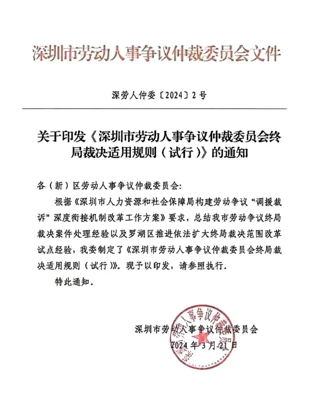 《深圳市劳动人事争议仲裁委员会终局裁决适用规则(试行)》