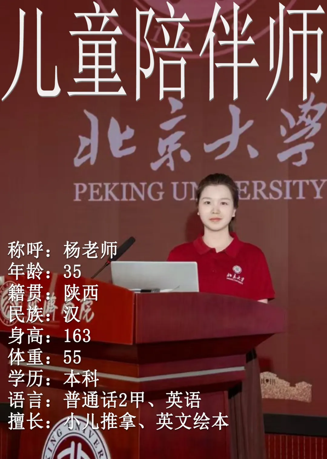🌟 全能陪伴|不止照料,更懂启蒙 ▫️ 生活照料:熟练带睡、做辅食、孩子日常家务,精细照料不马虎 ▫️ 启蒙陪伴:中英文绘本阅读、英语启蒙(简单日常交流)、手指精细运动、益智游戏 ▫️ 习惯培养:引导规律作息、专注力、礼貌礼仪,情绪管理+时间管理双引导 ▫️ 运动陪伴:户外运动、亲子运动,助力孩子体能发展