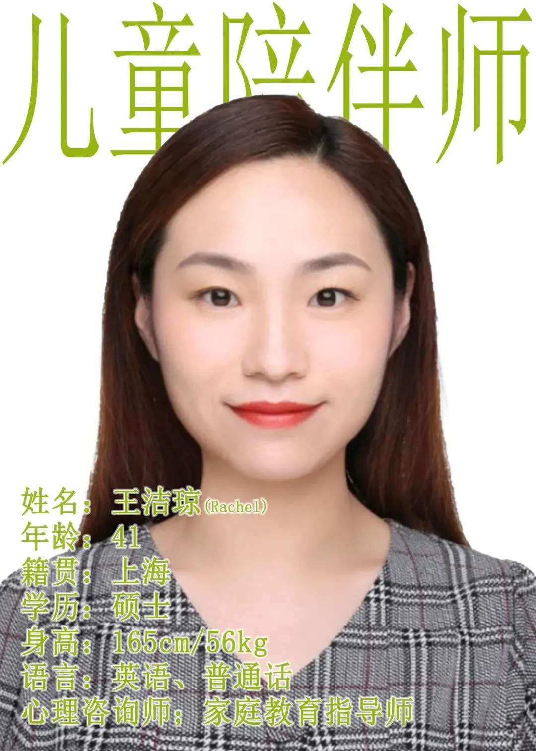 任儿童陪伴师,熟悉教材重点,擅长小初高规划,兼顾孩子综合能力培养及家庭教育指导。 ❤️ 贴心专业有温度性格随和耐心,喜欢孩子、懂儿童身心特点,可照顾特殊儿童。秉持“让成长可见”理念,善用鼓励激发潜能,结合中医知识守护孩子身心健康。 📍 求职适配: