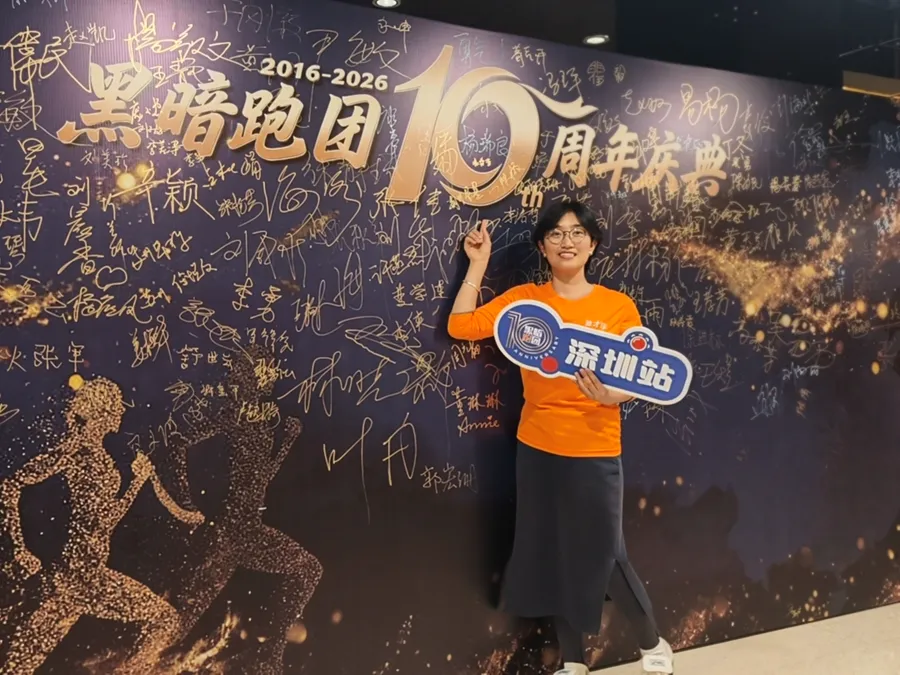 去年12月底,一看到十周年庆典活动报名信息,我非常激动,赶紧报了名。我是2023年4月份加入黑跑大家庭,去年11月成为深圳站的负责人。没过多久,就遇上了盛大的十周年庆典活动。