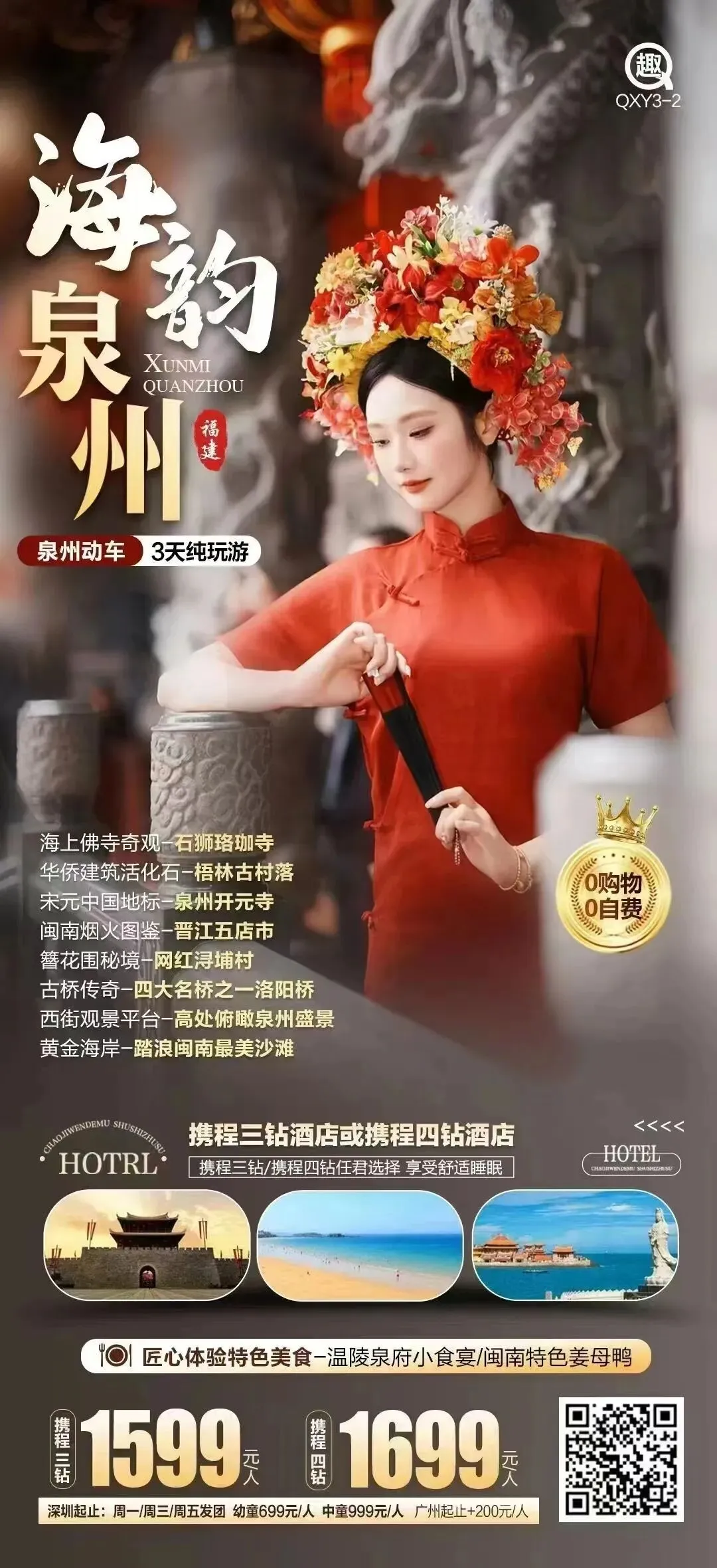 温馨提示:行程中的开元寺作为佛教圣地,需保持安静。为践行文明、无噪音旅游,我们为您准备了无线耳麦租赁服务,费用为20 元/人次,该服务自愿消费,绝不强制,旨在为您提供更优质的游览体验。