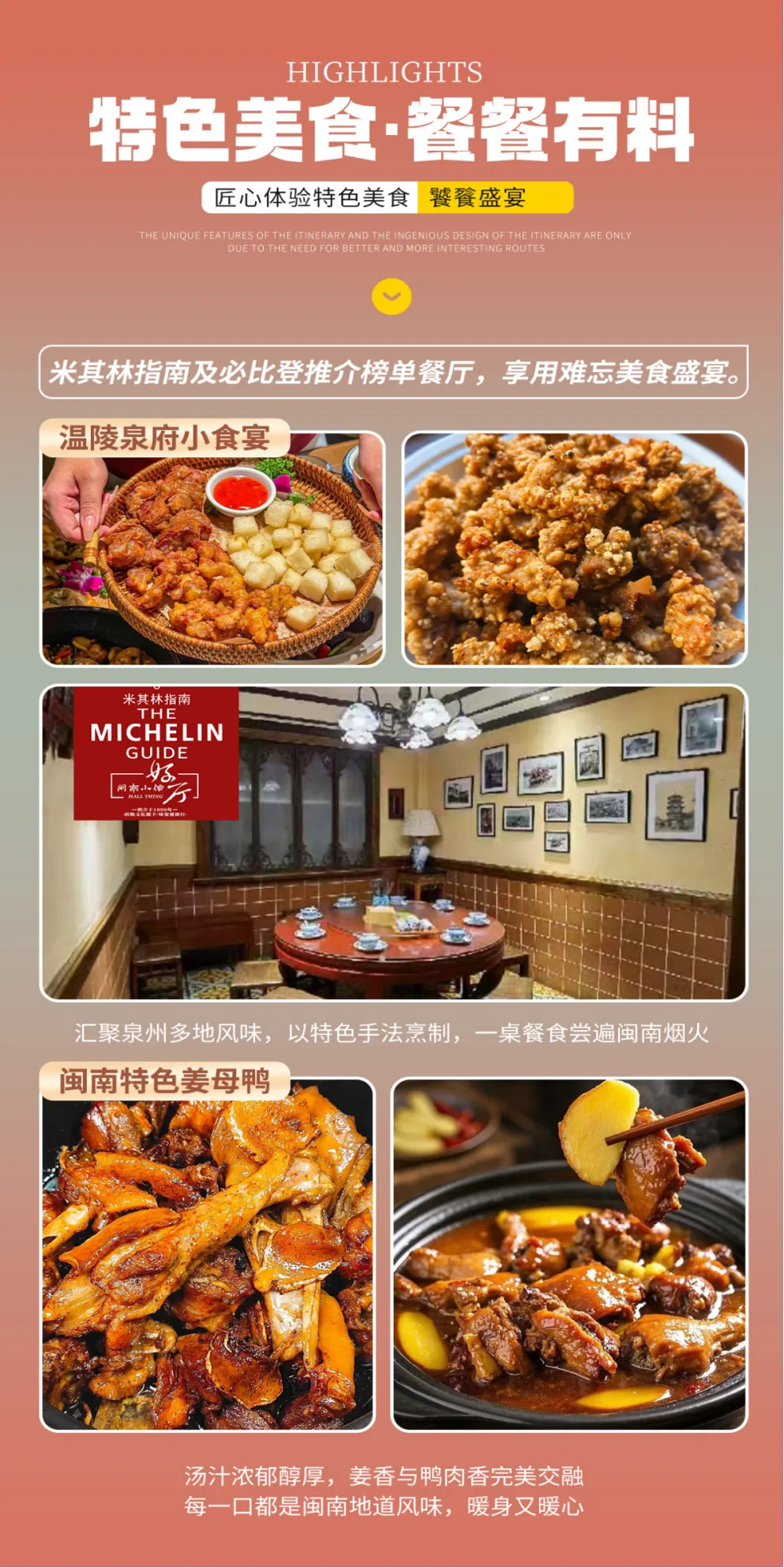 早餐:含 午餐:闽南姜母鸭餐晚餐:敬请自理住宿:晋江