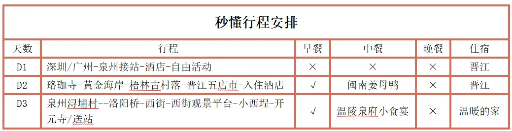 早餐:敬请自理 午餐:敬请自理晚餐:敬请自理住宿:晋江