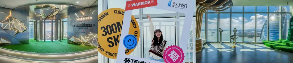 10:30登顶【300 米云端云上厦门】55 层观光厅(游览≥60 分钟):1300㎡360° 全景观海平台铺展极致视野,鼓浪屿、厦门大学、环岛路、新老市区美景全景铺陈。云端俯瞰,高楼如精致积木,演武大桥似丝带缠绕海岸,每一眼都是震撼感官的视觉盛宴。