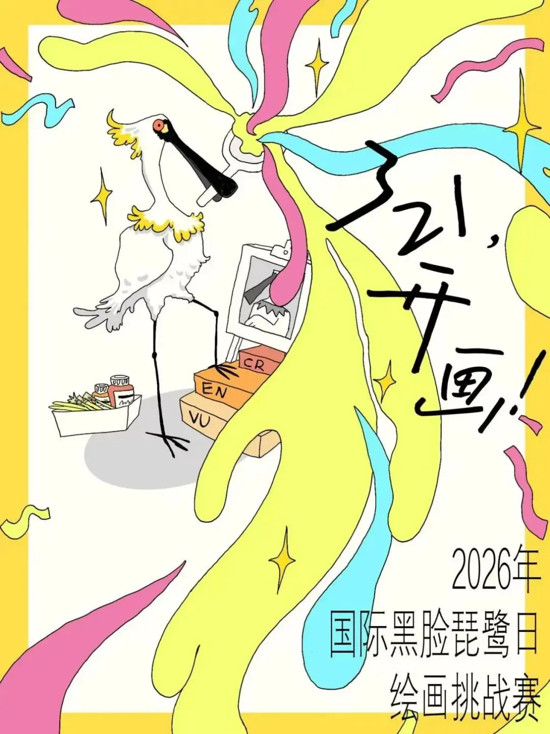 本次绘画挑战赛是“爱鸟周”主题活动的重要延伸,结合国际黑脸琵鹭日,以全球濒危物种保护典范——黑脸琵鹭为核心创作元素,面向全社会公众开放征集。参赛作品可围绕黑脸琵鹭物种形象、生存故事、保护意义、栖息地保护等方向自由创作,传递濒危物种保护核心理念,展现跨境协同保护成果。