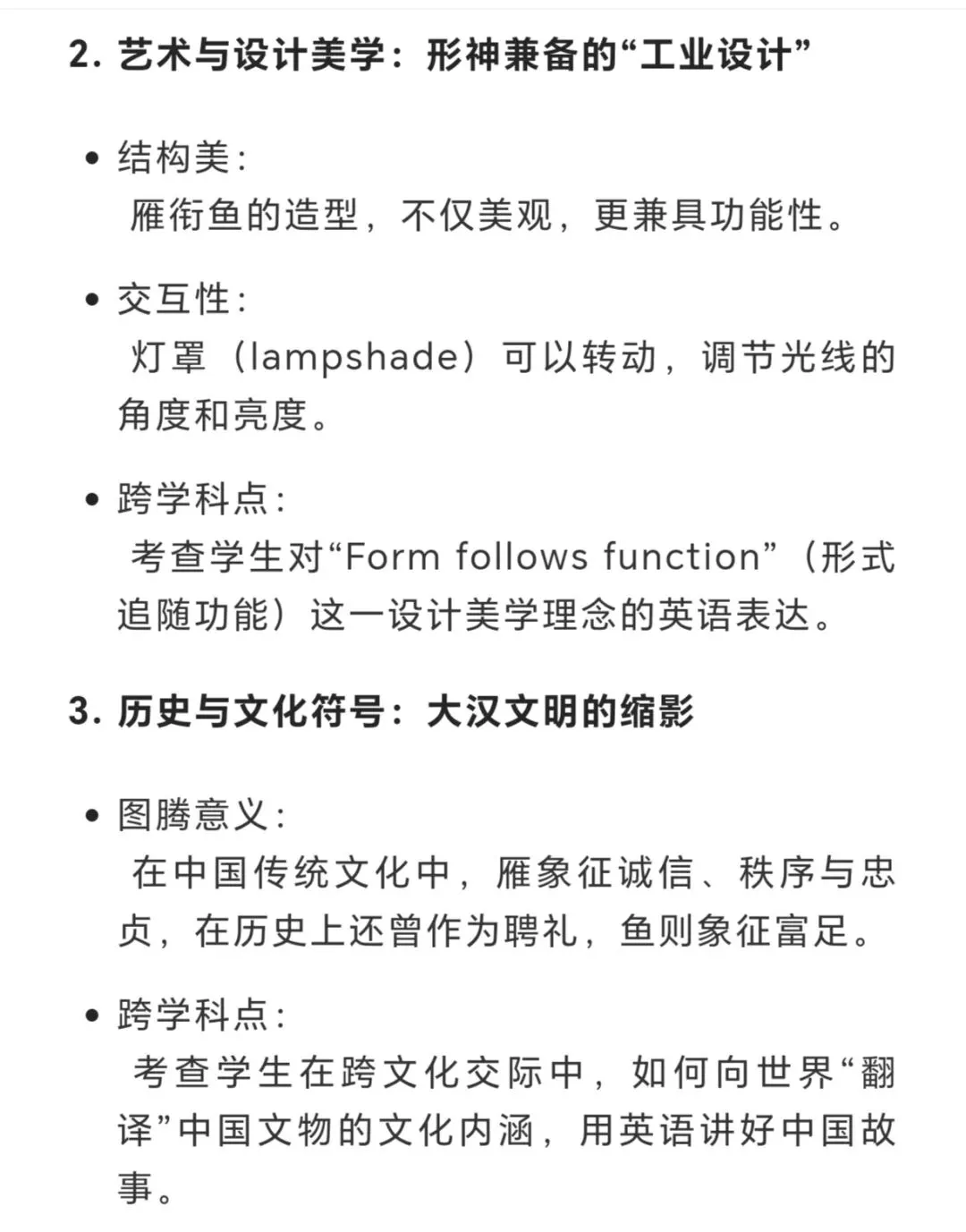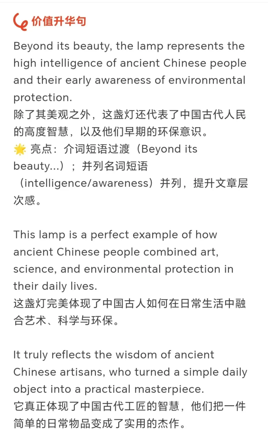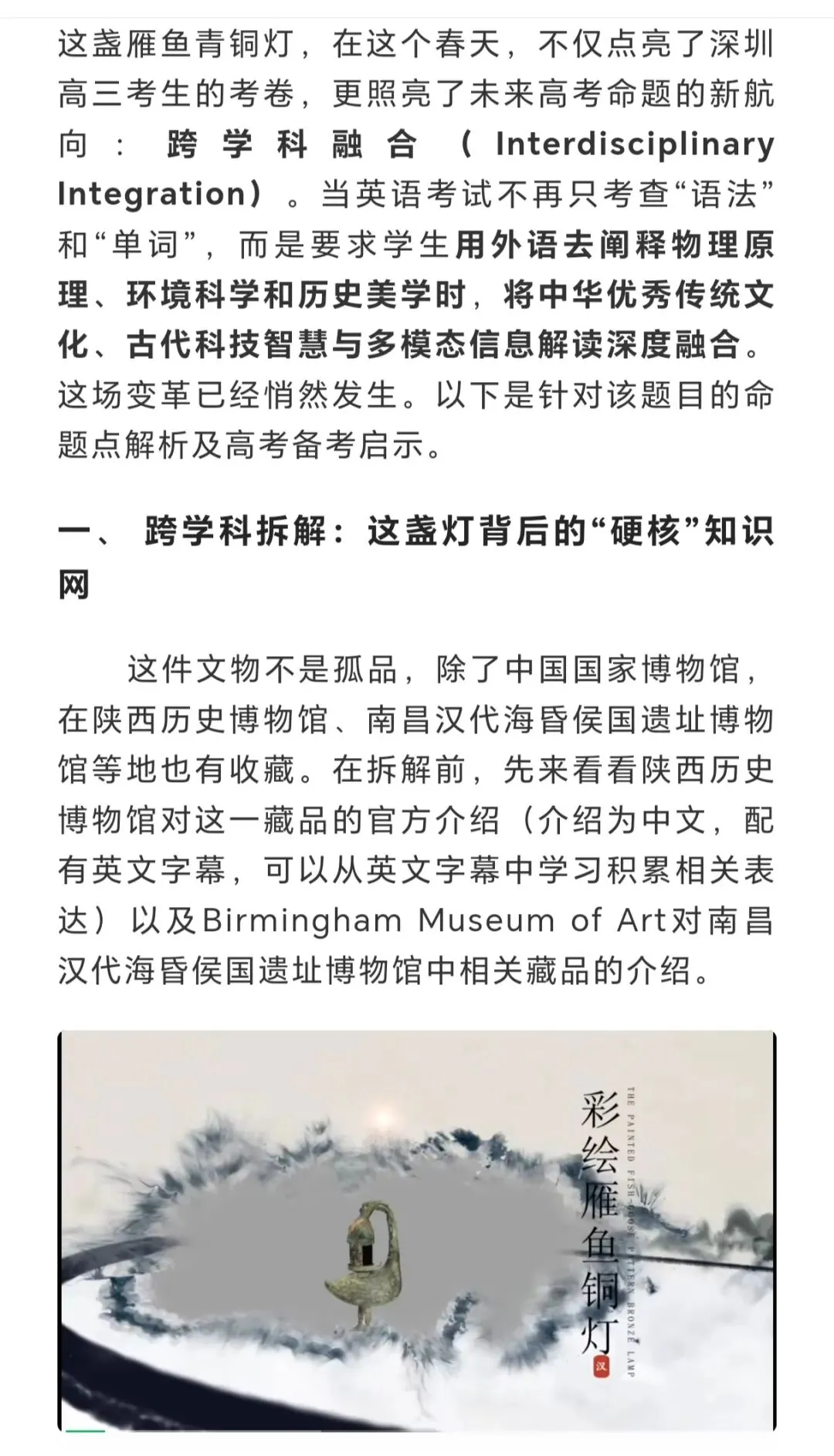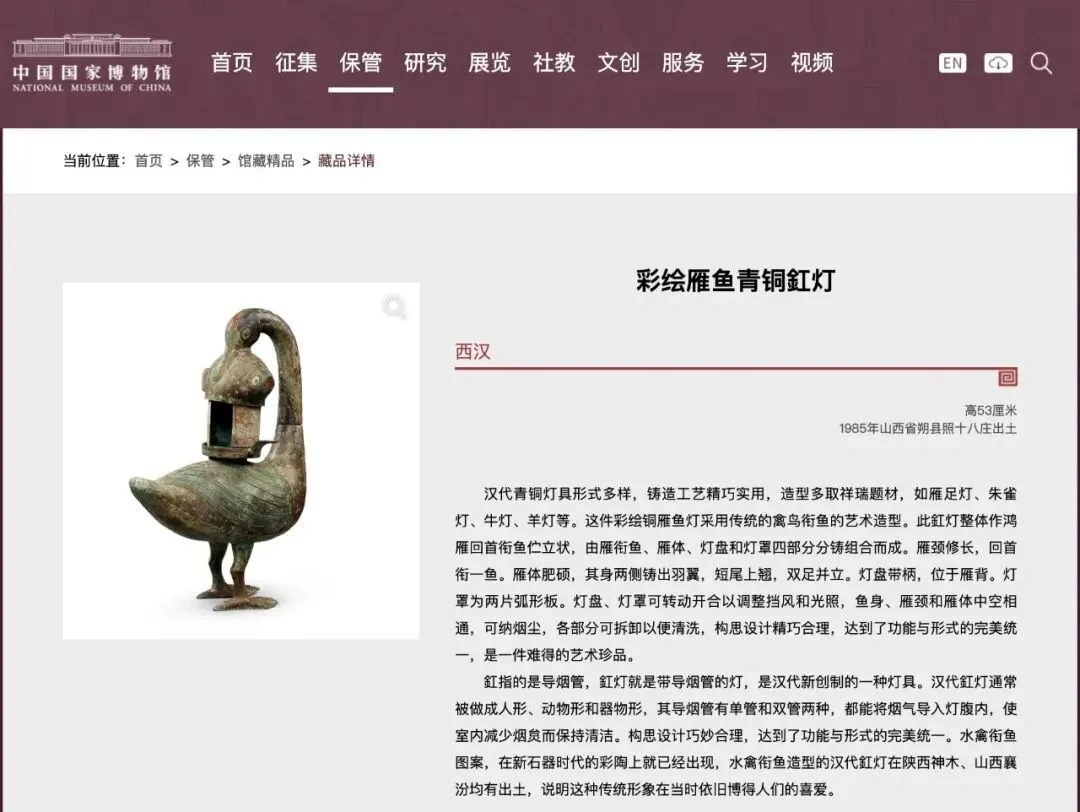 选择 “雁鱼青铜灯” 作为载体,是因为它是兼具艺术美感与科技智慧的汉代文物,能体现中国古代的工匠精神与环保理念,引导学生在介绍中传递文化自豪感。
