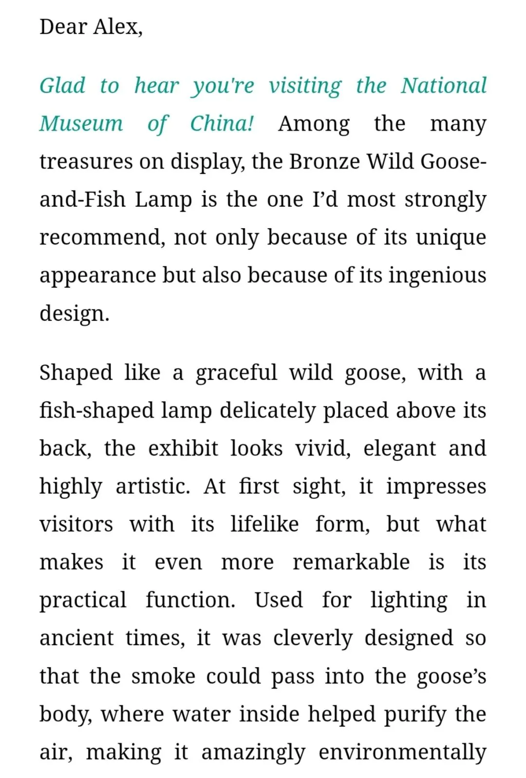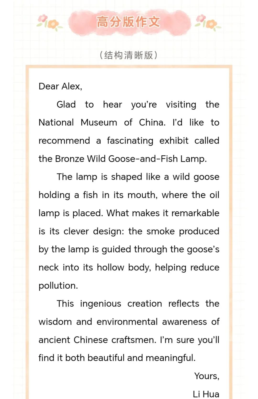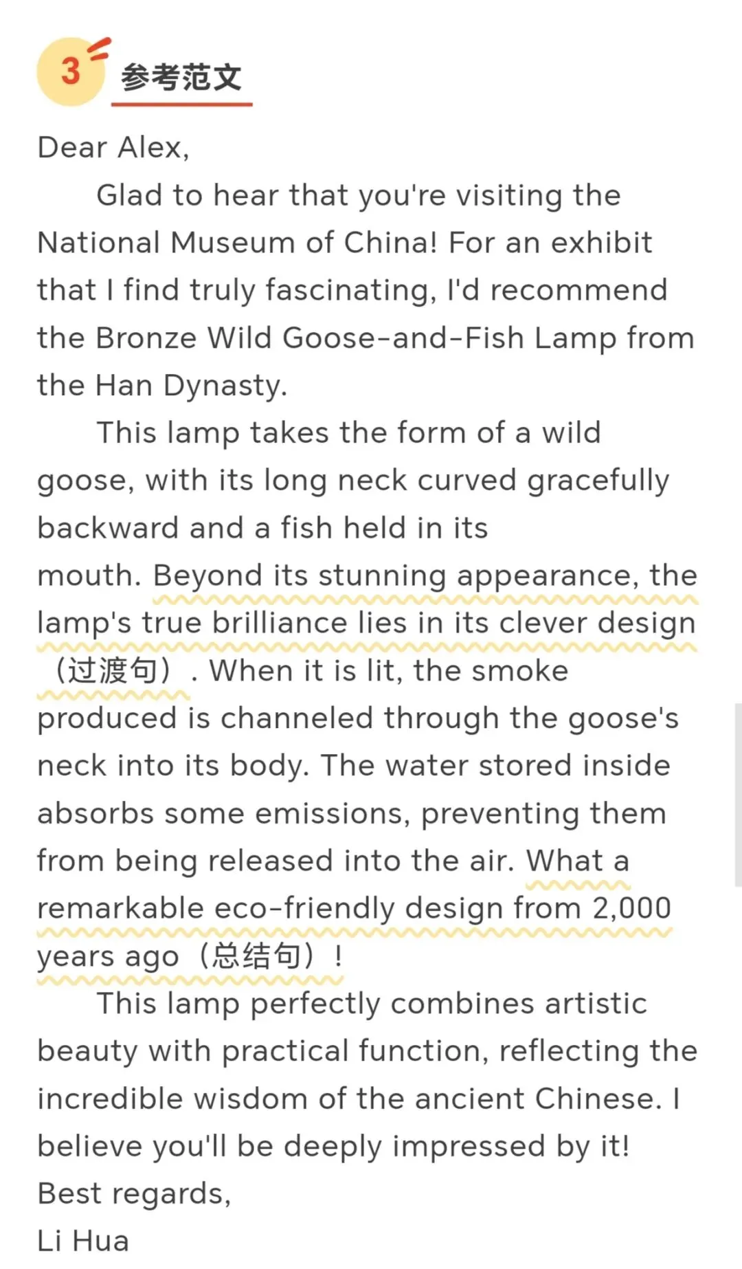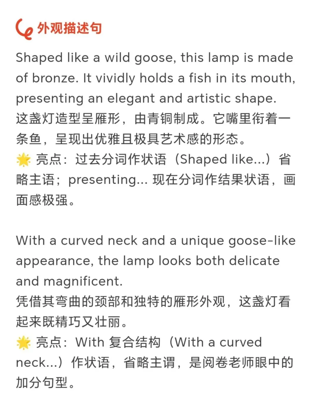 选择 “雁鱼青铜灯” 作为载体,是因为它是兼具艺术美感与科技智慧的汉代文物,能体现中国古代的工匠精神与环保理念,引导学生在介绍中传递文化自豪感。
