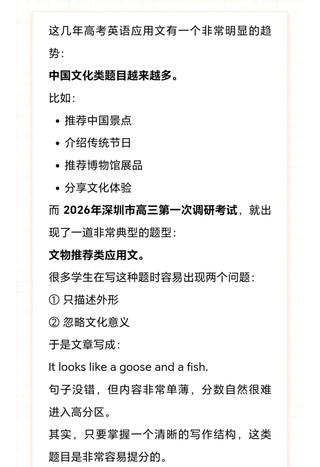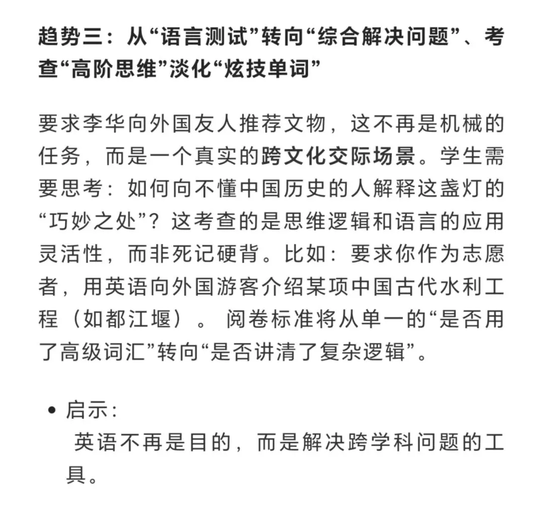 核心考察是用英语介绍中国文化,本质上是在考查学生的跨文化交际能力和信息整合能力 ,而非单纯的语言输出。文化自信与传播