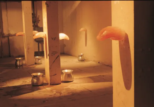 沈远的作品《白费口舌》,灵感来自法语中“langue”一词的双重含义——既指“舌头”,也指“语言”。她用冰做成的舌头模具,凝固了她初到法国时面临的语言困境。