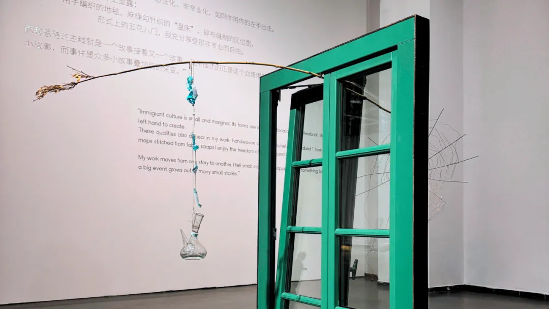 疫情期间,她在封闭状态下创作的作品《垂钓巴黎的空气》,利用杜尚的《新鲜寡妇》(Fresh Widow)和《巴黎的空气》作为视觉原型,将一扇法式木窗改造为垂钓工具,把个人丧偶之痛与疫情封锁结合;