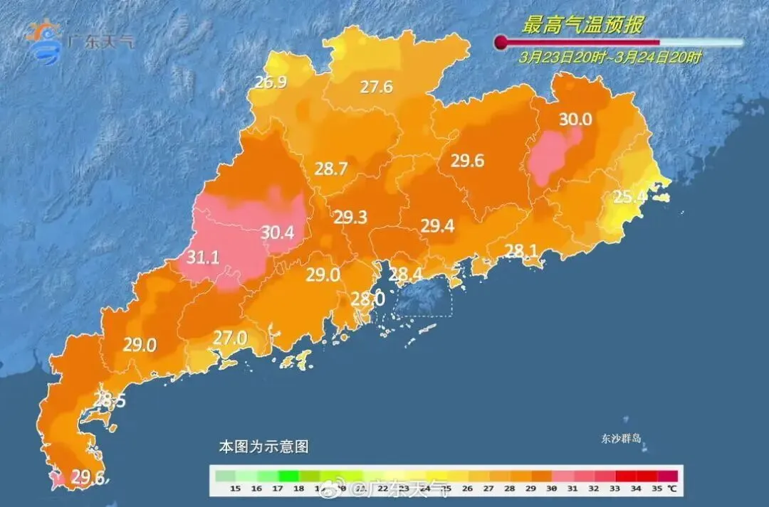 广东部分地区最高气温将冲破30℃
