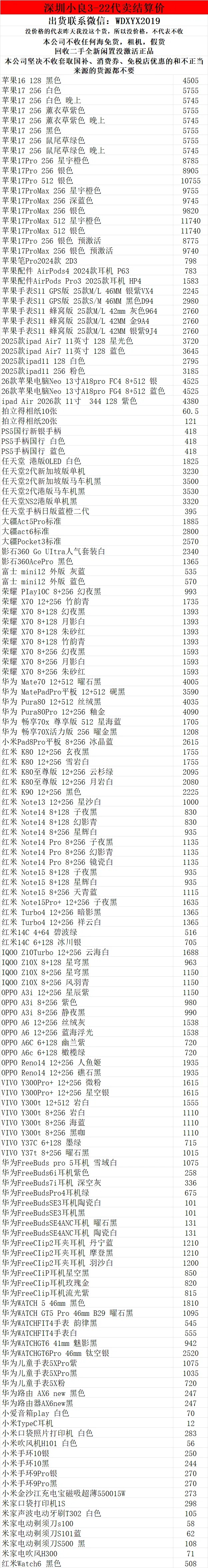 >深圳小良2026.3.22电子产品代卖结算价(美妆价格小程序查看)