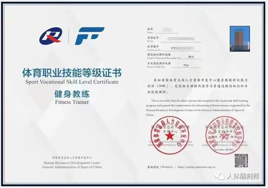 测评合格者(理论60分、技能60分),颁发“健身教练职业能力培训证书”。