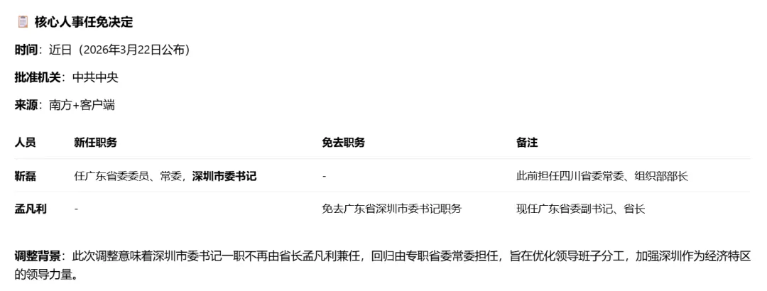 近日,中央批准:靳磊同志任广东省委委员、常委和深圳市委书记;免去孟凡利同志的广东省深圳市委书记职务。