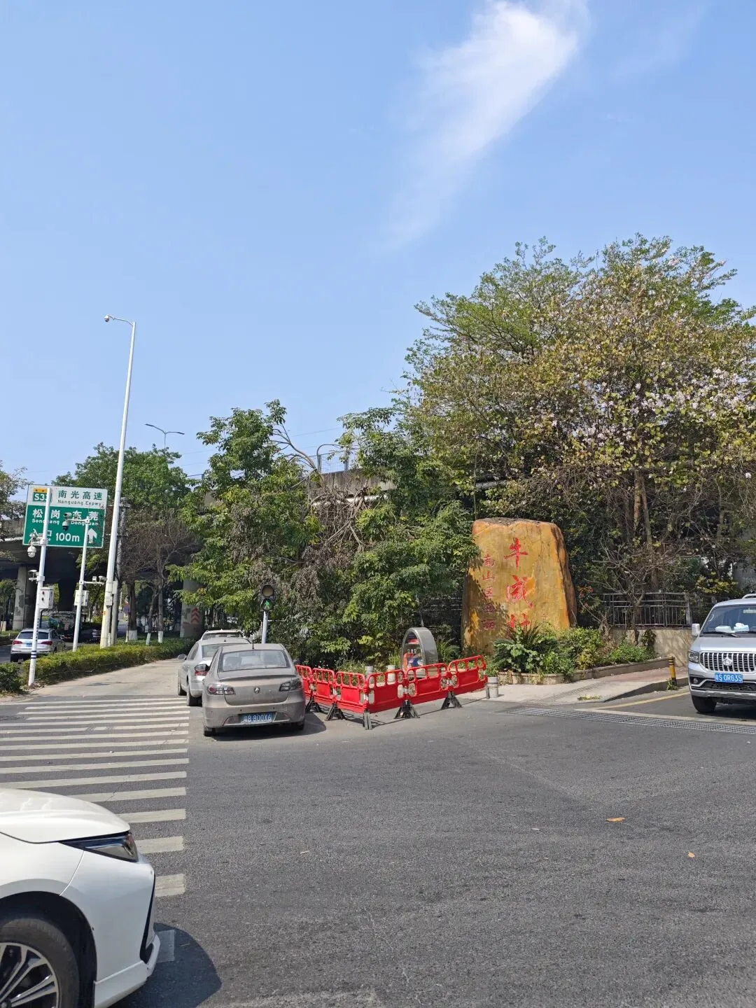 鲲鹏径3段的第2个打卡点--过马路的红绿灯进入南山西丽区域的牛成村。