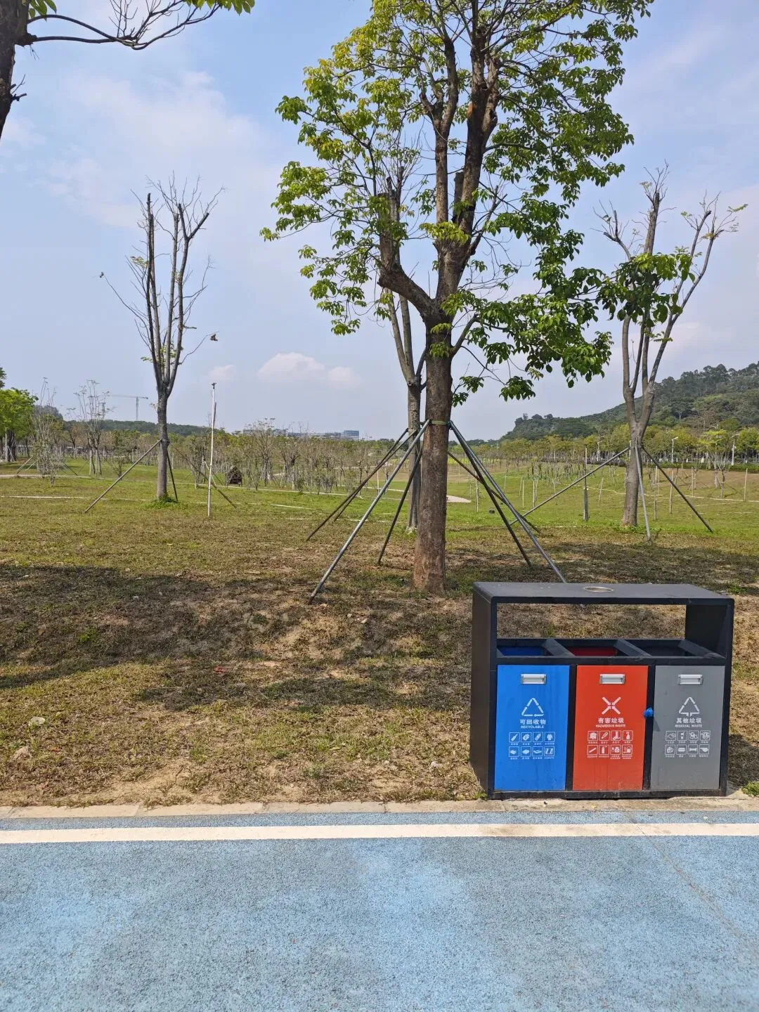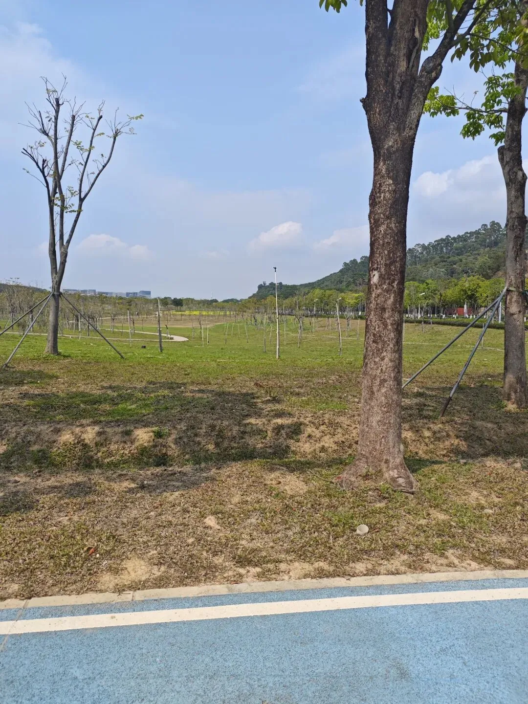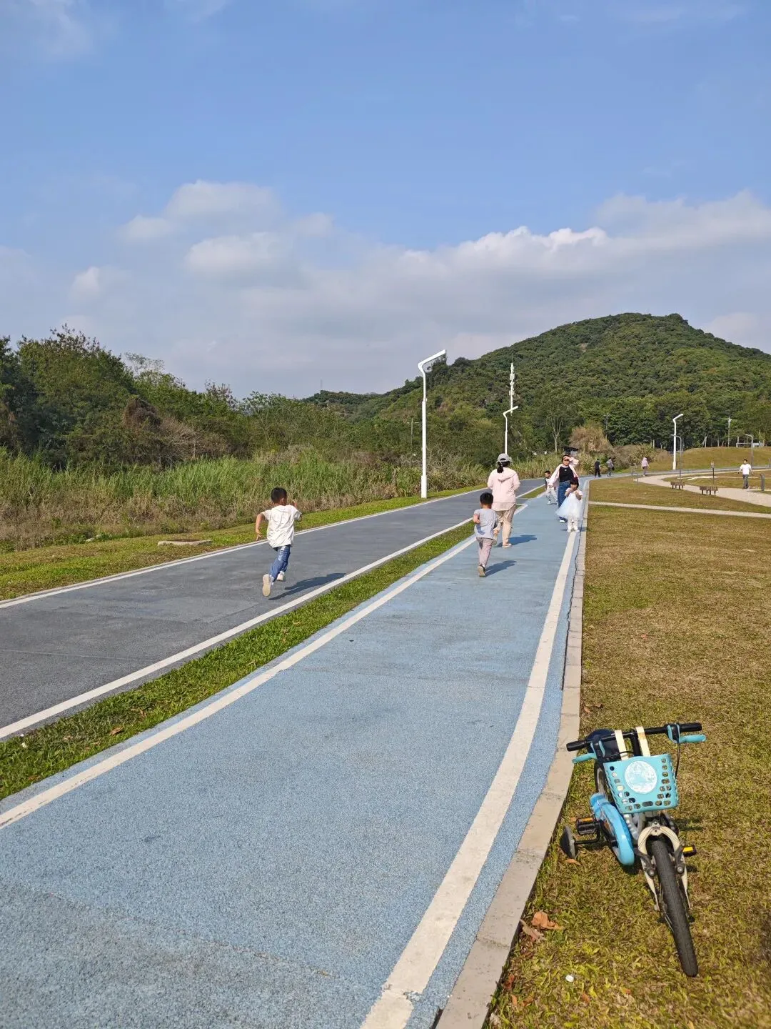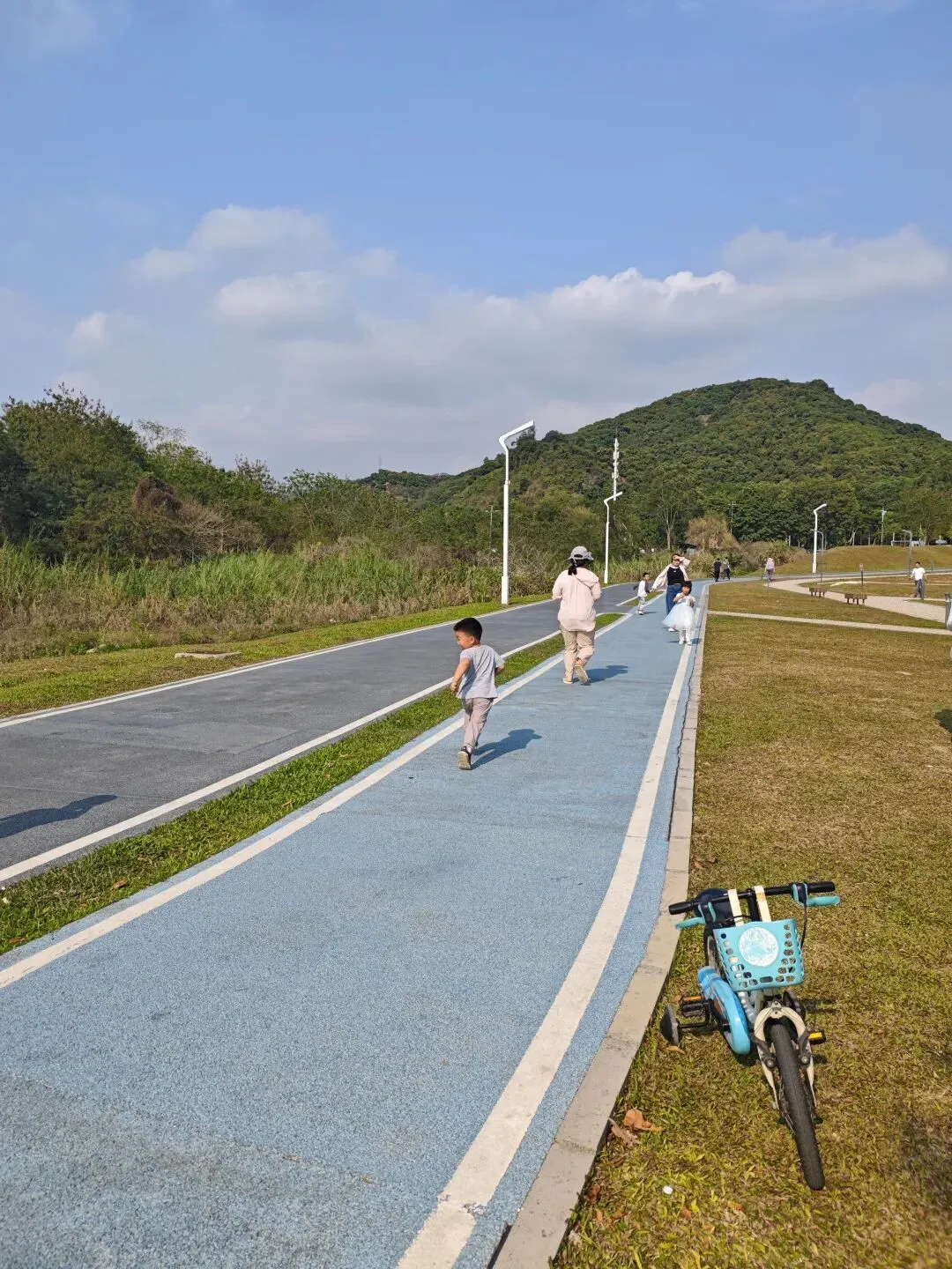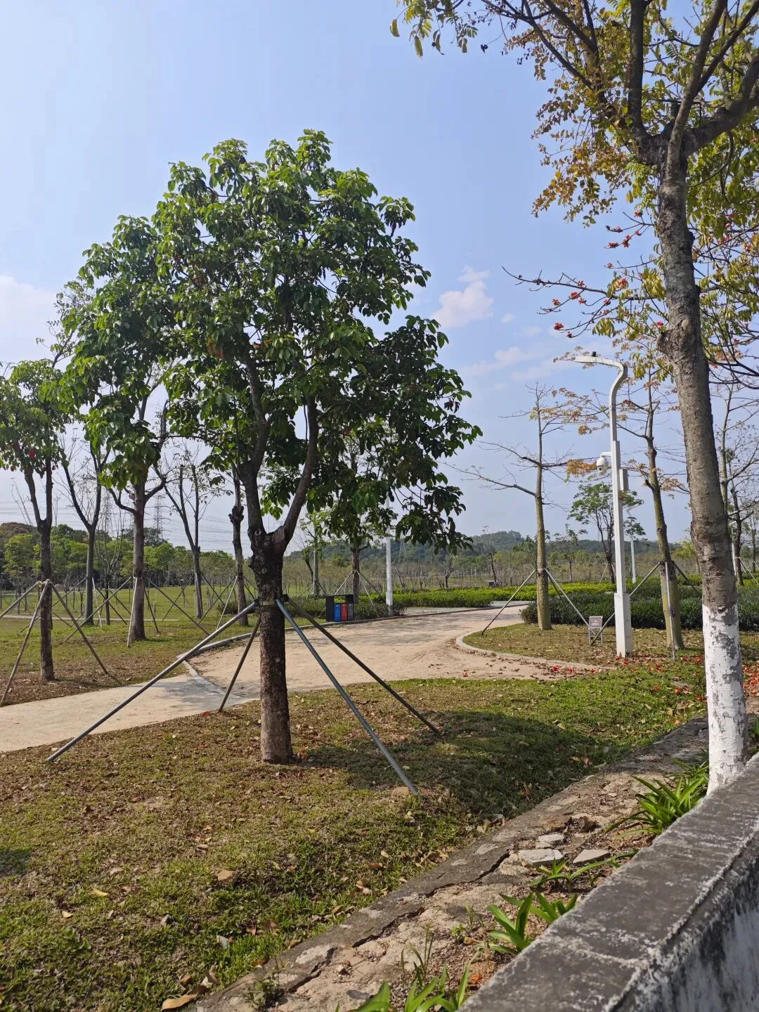 这个公园阳光充足也很不错,非常新,树木比较小。我开始溜达了1km就觉得有点累啦。