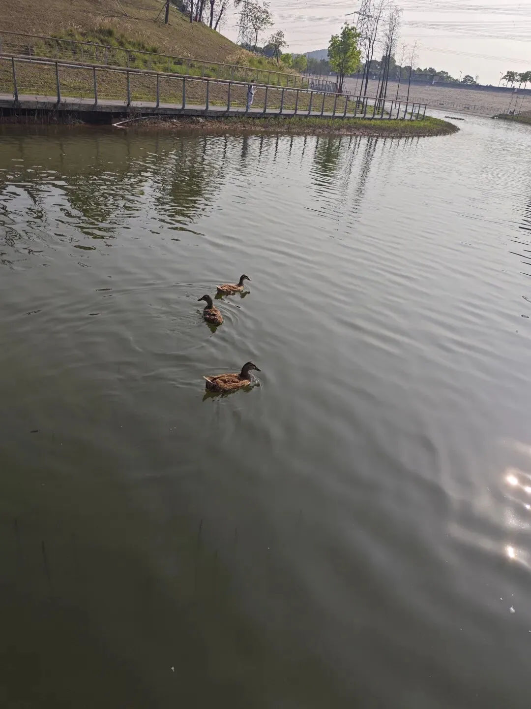 环湖湿地绿道真的很好,湖里还有大白鹅和鸭子等