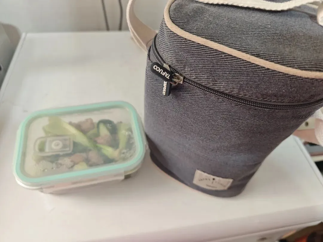 这是我的午饭,我很少吃外卖,都是自己带,半斤青菜2两肉,主要是控制体重。