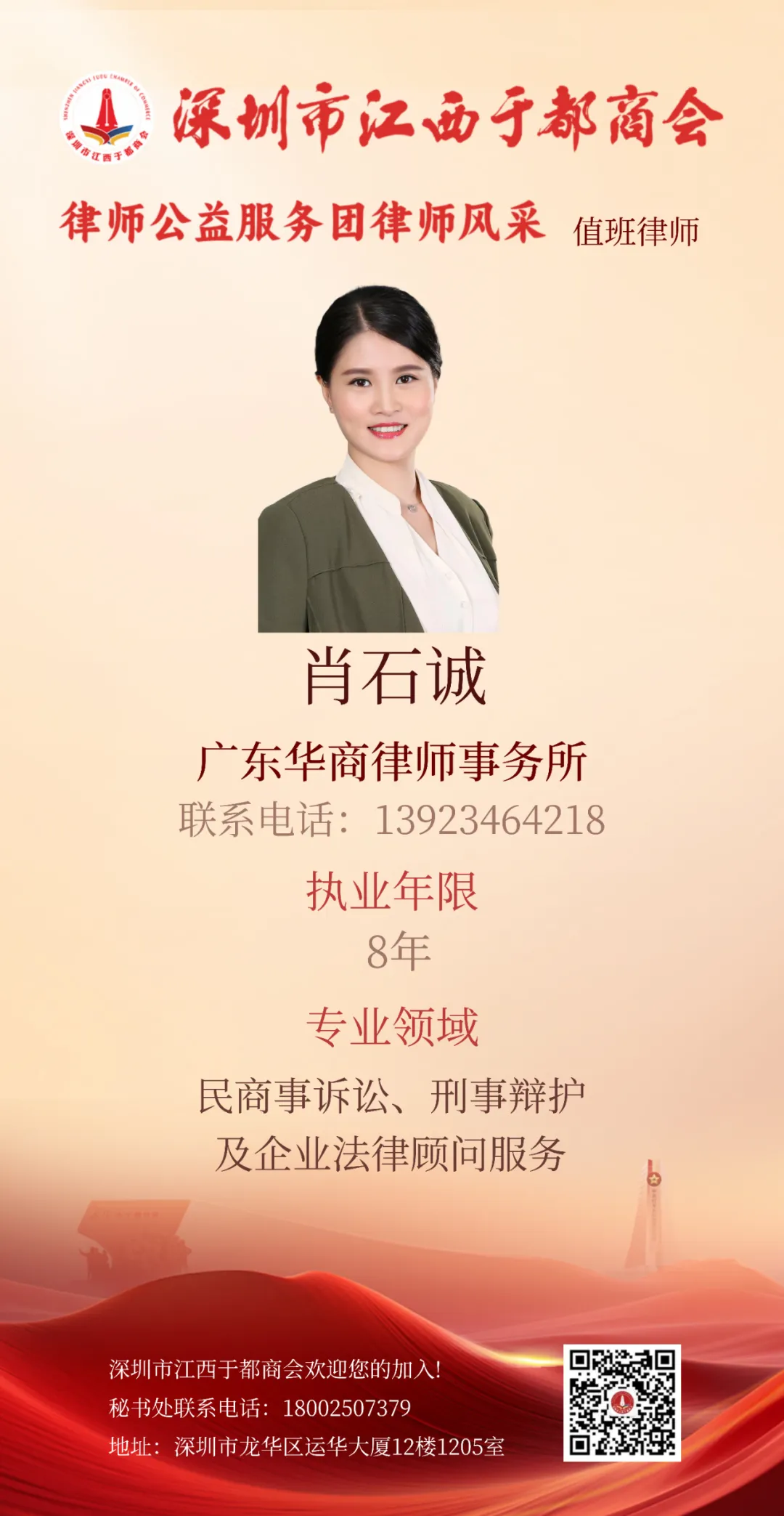 >商会公告 | 深圳市江西于都商会律师公益服务团3月25日值班律师预告