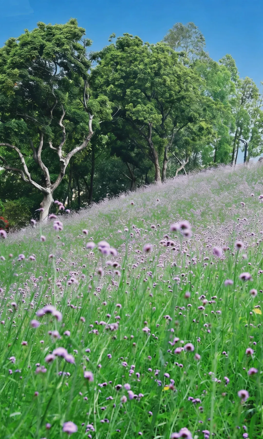 而此刻,龙岗坂田山花浪漫公园的马鞭草正值盛花期,一整片山坡被染成温柔的紫色,简直美到窒息!