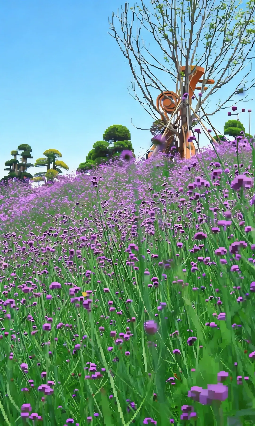 2️⃣ 紫色马鞭草花海:花株与人齐高,梦幻治愈,温柔风大片必拍