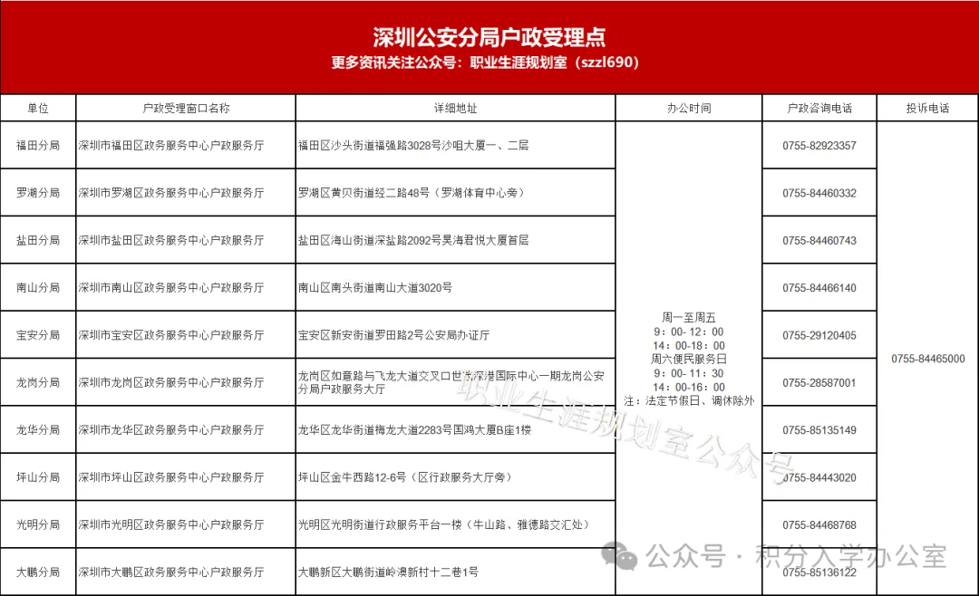 深圳入户:2026年深圳市人社局、公安局户政咨询电话及咨询名单汇总