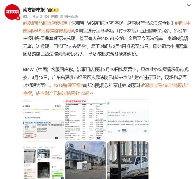 最近刷到一条挺让人唏嘘的新闻,深圳那家曾经一年卖得最火的宝马4S店,突然就关了门。说起来你可能不信,就在今年春节过后,这家店还贴出过通知,说是要搞什么系统升级,复工时间从3月初推到了月中。结果大家左等右等,没等到开门,倒是等来了法院的封条。