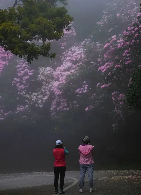 ⑤毛棉杜鹃:含苞待放。重头戏通常在3月下旬至4月初进入盛花期,届时杜鹃谷、万花屏将变成粉色花海。