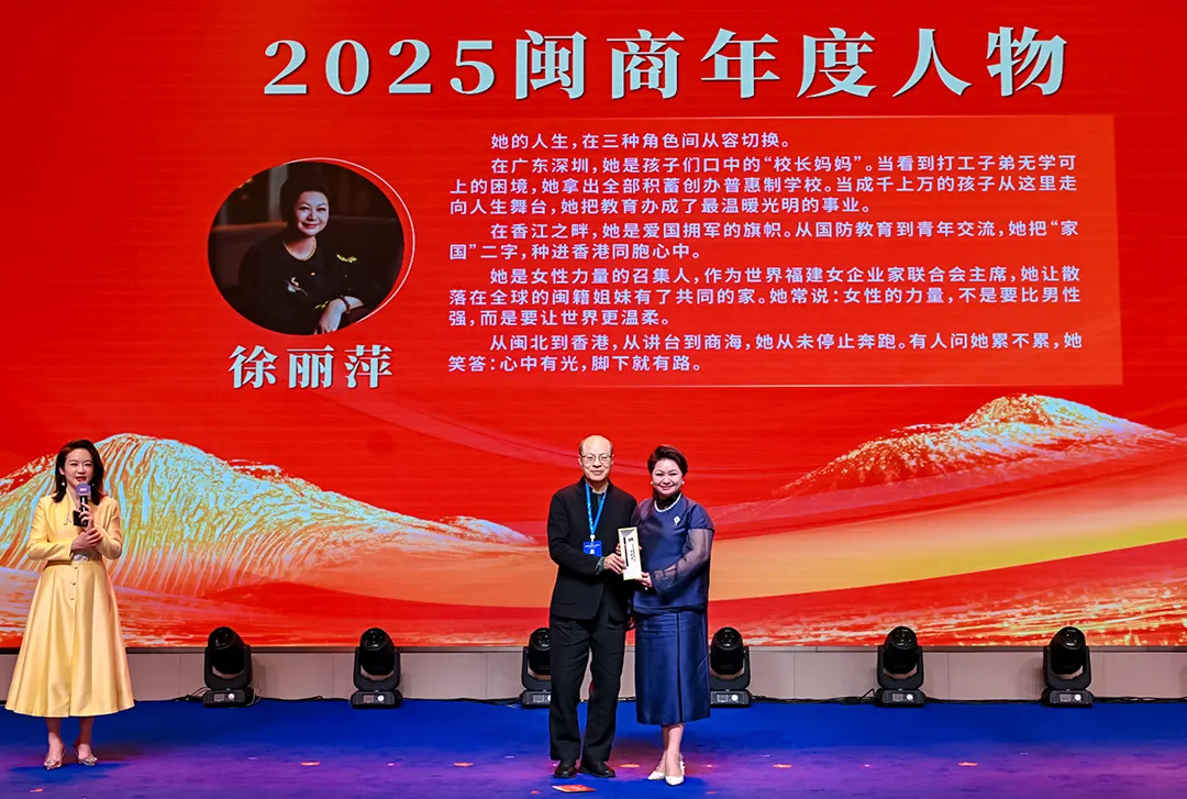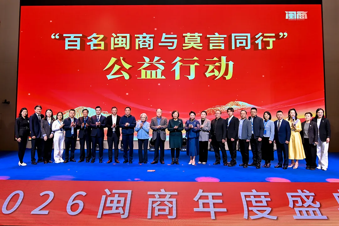 3月20日,2026闽商年度盛典在福州福耀科技大学圆满举行。新时代闽商齐聚一堂,共话发展、共践公益,彰显闽商担当与家国情怀。徐丽萍会长荣膺「2025闽商年度人物」,幷参与闽商发展研究院发起、百名闽商与莫言同行公益行动等重要环节,以巾帼力量书写闽商新篇章。