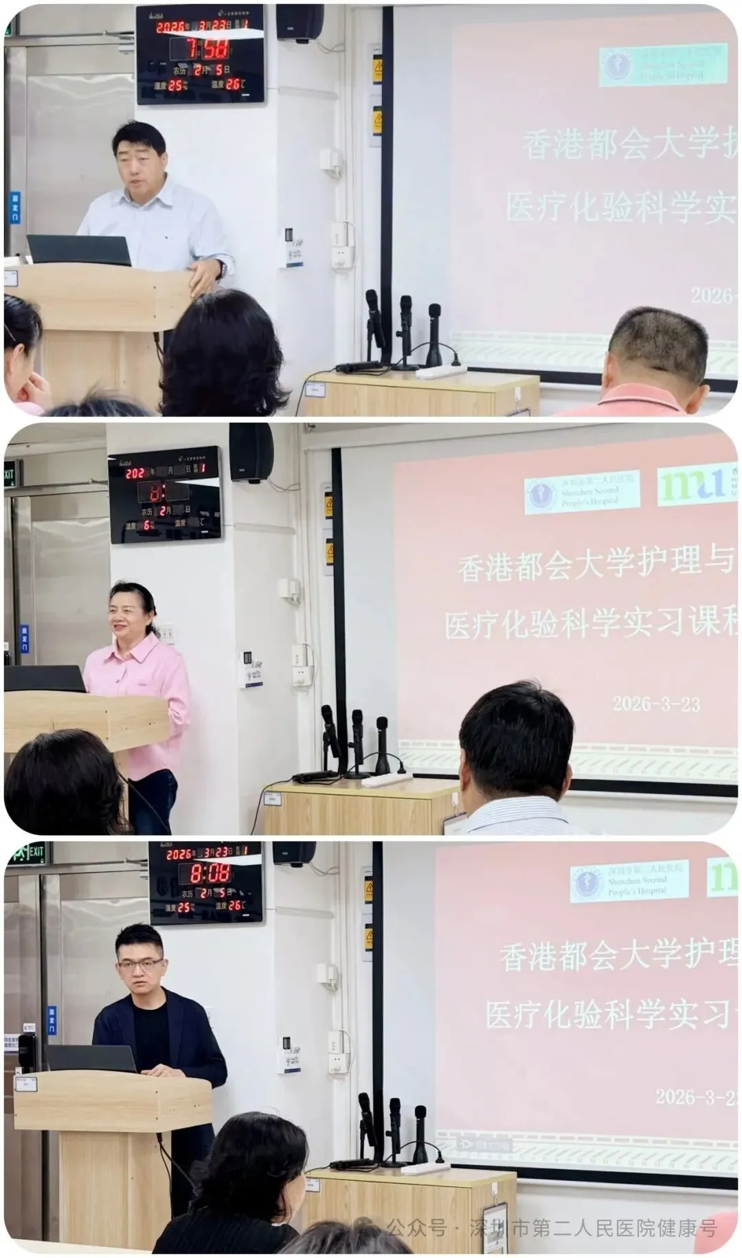 3月23日,深圳市第二人民医院(以下简称:深圳二院)检验科举行香港都会大学护理与健康学院医疗化验科学实习课程开班仪式。本次合作开创深圳二院与香港地区批量医疗化验实习带教工作先河,50名香港学子将分批次进入深圳二院检验科、病理科、输血科开展轮转实习,每人需完成160小时临床实践培训。作为深圳市老牌三甲综合医院,深圳二院病种资源丰富、诊疗项目全面,能够为学生提供真实多元的临床实践场景与扎实的学习保障。