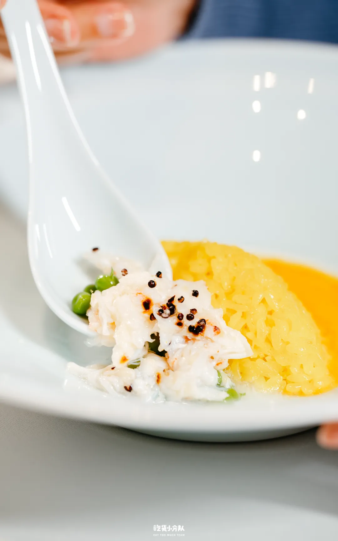 主食为野生蟛蜞膏配姜汁饭,细小野生蟛蜞蟹,其蟹膏色泽温润、香气清雅而不腥。搭配姜汁饭同食,辛香微微提振味觉,同时中和蟹类的寒性,使风味更为圆融。