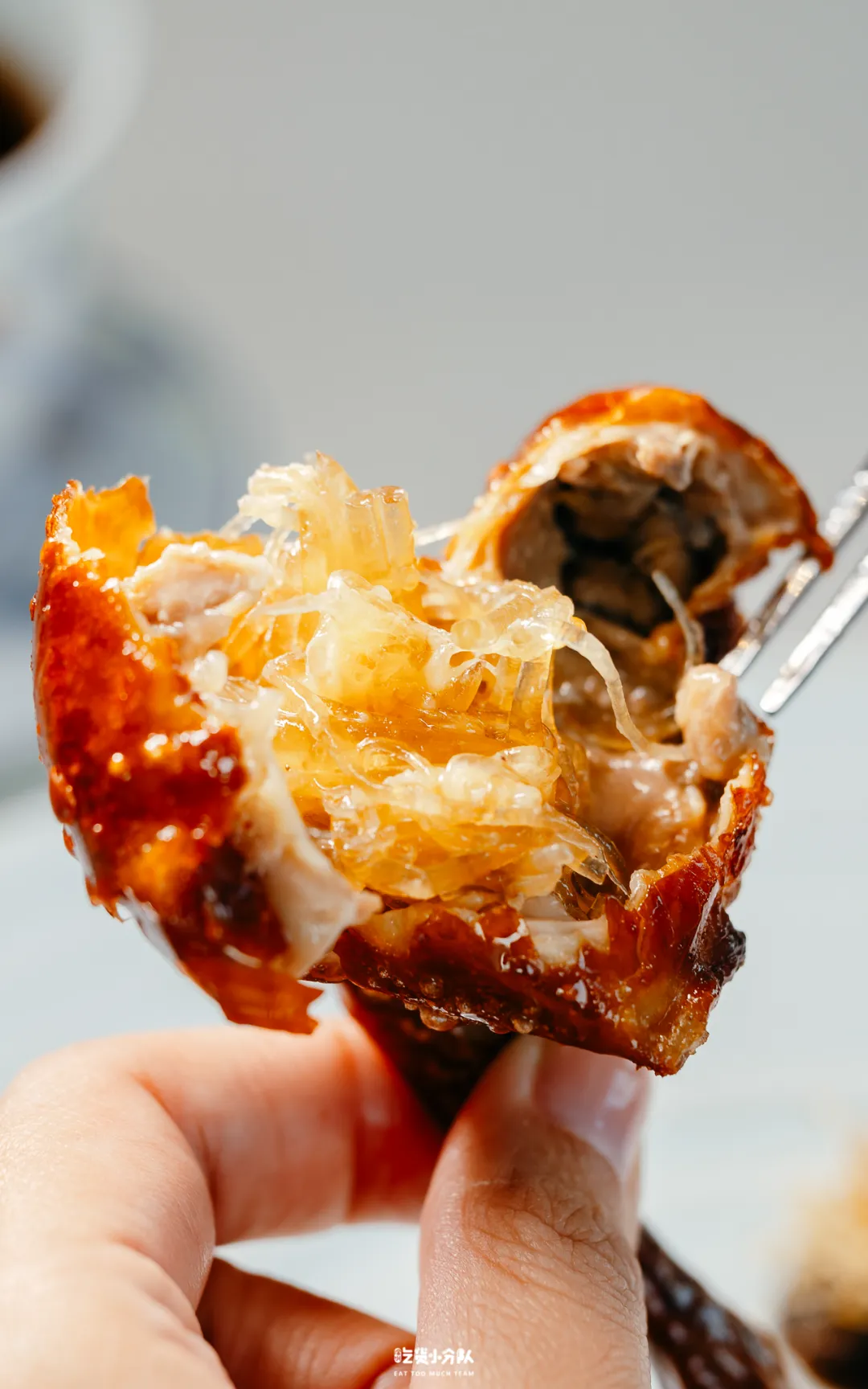 35-45日中山石岐乳鸽,脆皮乳鸽腿为载体,将鱼翅酿入其中,外皮经高温处理至金黄酥脆。咬开瞬间,内里鱼翅与肉汁交融,呈现出近乎“爆浆”的丰盈质地。