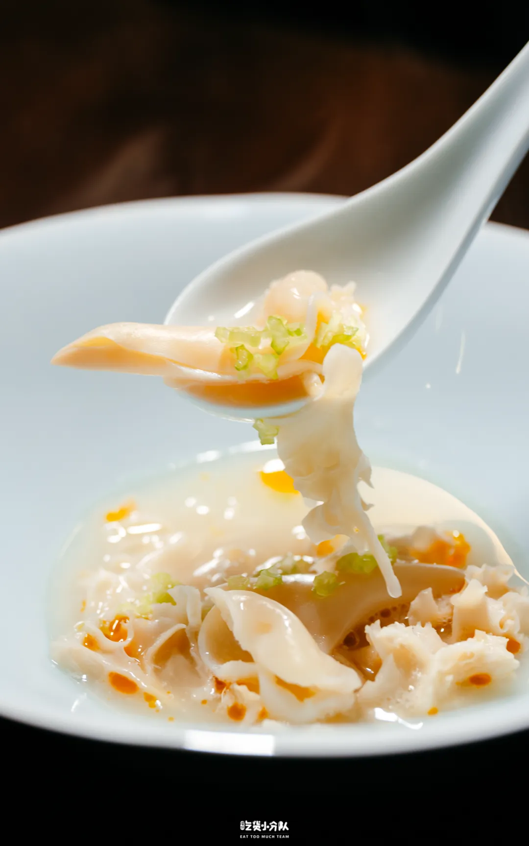 取自西藏亚东野生木耳,带有清雅的山野菌香;搭配北海2头花胶母,胶质丰盈,口感柔润而有层次。以海南黑胡椒慢炖入味,辛香温和而不燥,层层渗入汤体。