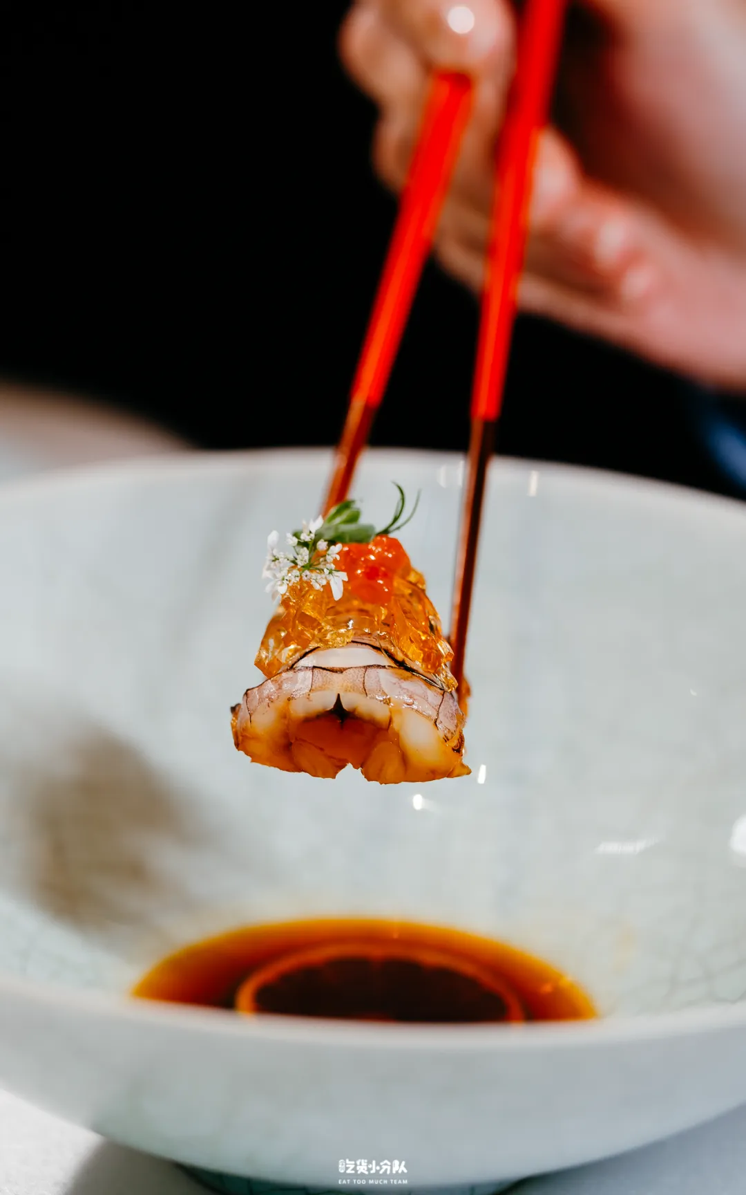 每日空运抵达的泰国富贵虾,仅取虾膏最丰盈的核心部位,以陈年花雕酒低温浸润。启箸之时,虾膏呈温润溏心,细腻如脂,虾肉则弹性十足,入口是层层递进的绵密与丰腴。