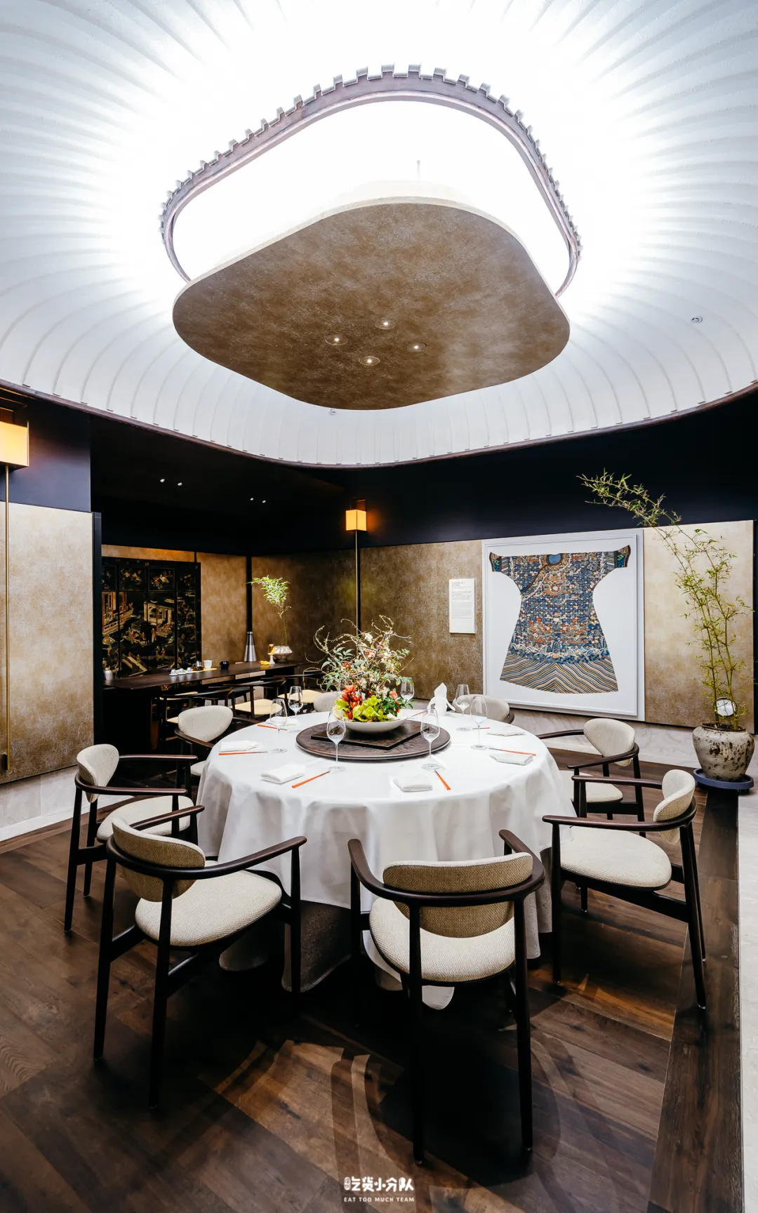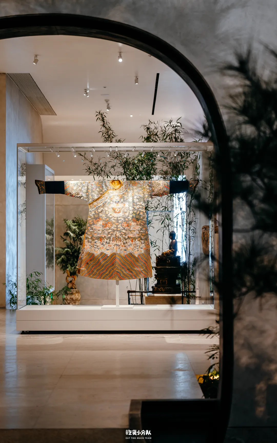 本期艺术展以“十二章纹龙袍”为主题,餐厅陈列多件珍贵龙袍藏品。作为一座“艺术食府”,空间与内容以季度为周期持续更新,每一季围绕不同主题策展,将器物、文化与餐饮重新组合。本期展览将于4月落幕,5月将开启全新主题。